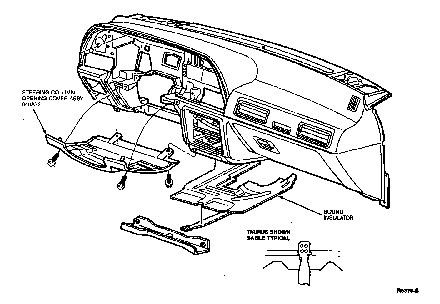 6. Remove four bolts and opening cover from under steering column.