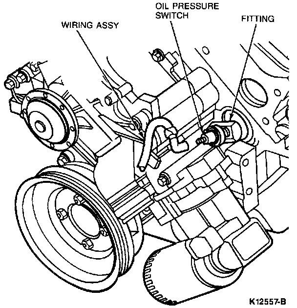 4. Disconnect wire from oil pressure switch and remove switch using Removal/Replacer Tool T87L-9278-A or equivalent.