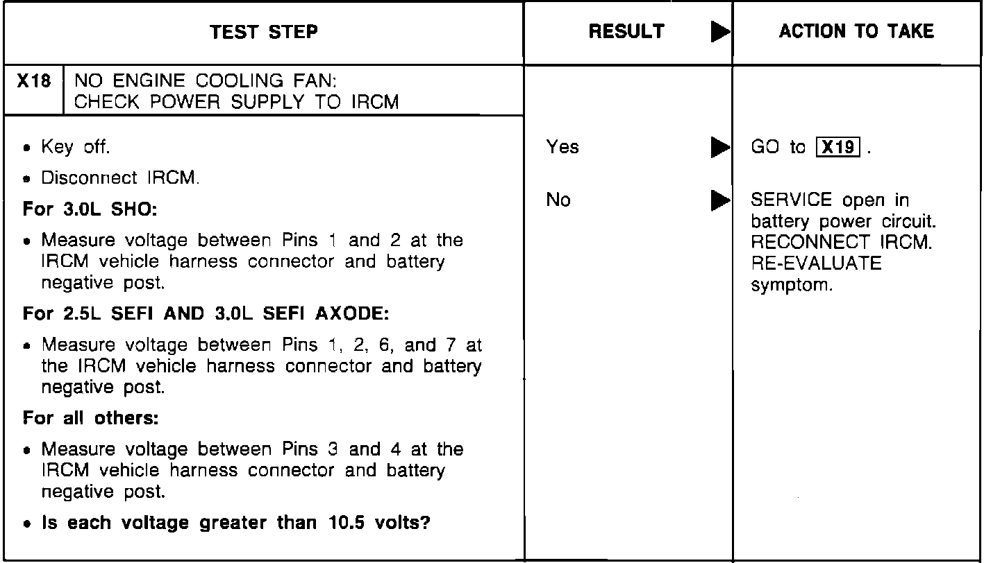 X18 - No Engine Cooling Fan: Check Power Supply to IRCM