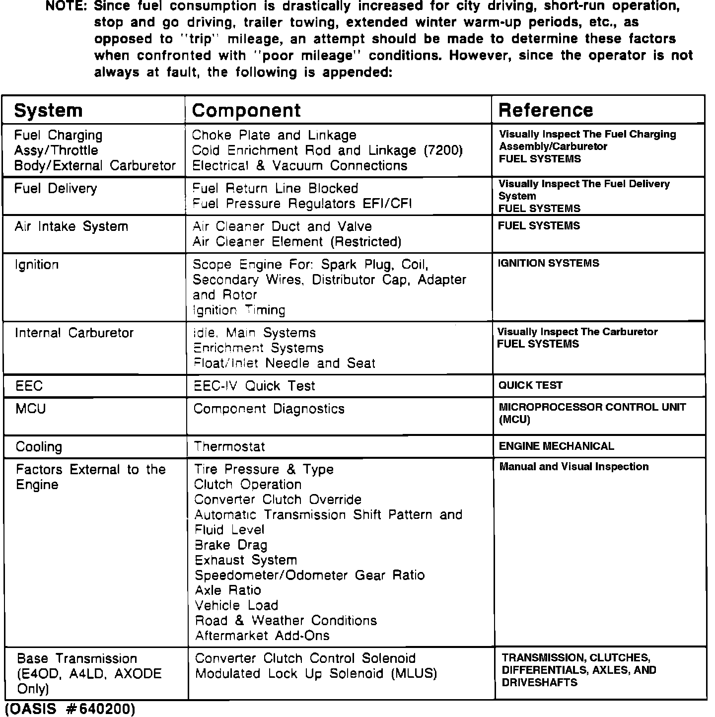 Poor Fuel Economy:
