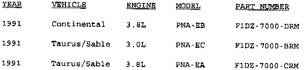 AX4S automatic transaxles for 1991 Taurus-Sable-Continental are available as priced Ford Remanufactured assemblies distributed through your facing Ford Authorized Remanufacturer. When calling your F.A.R., order assemblies by Service Part Number from the listing provided.