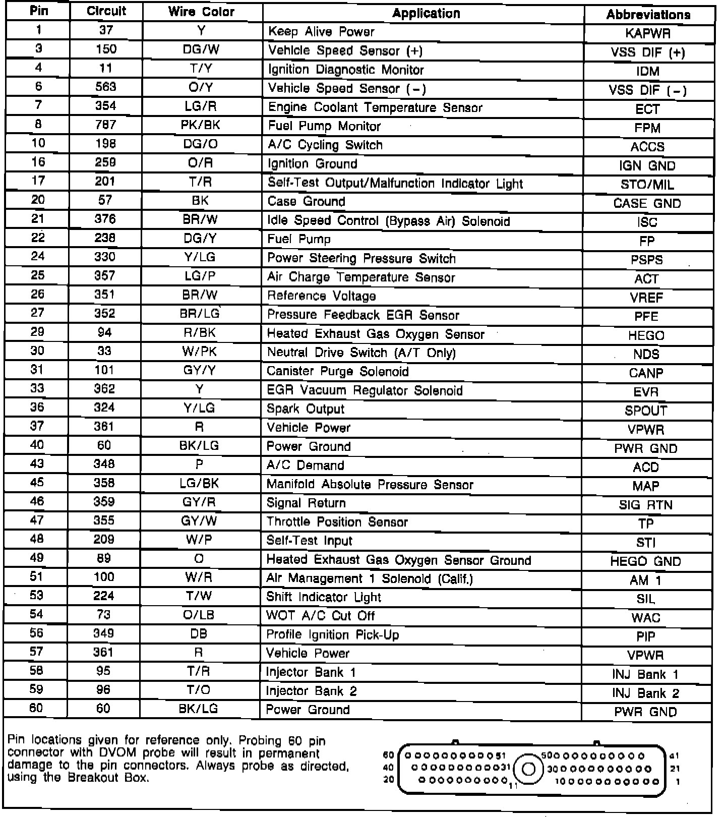 Electronic Control Assembly (ECA) Connector Pinout: