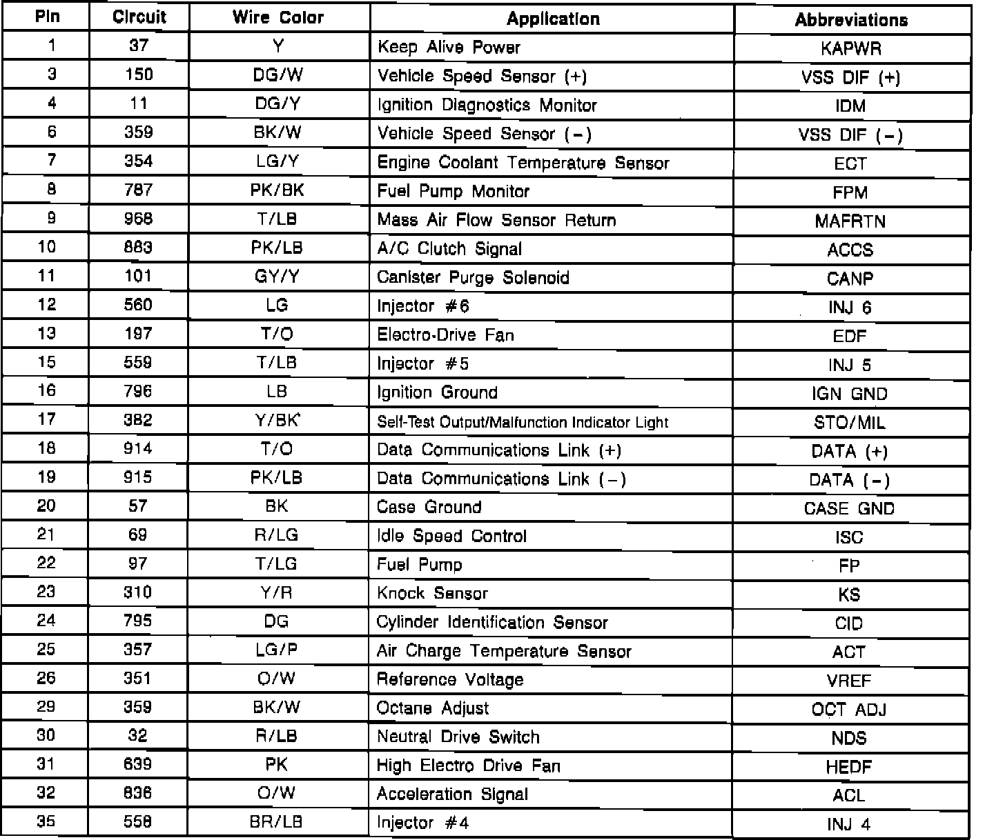 Electronic Control Assembly (ECA) Connector Pinout: