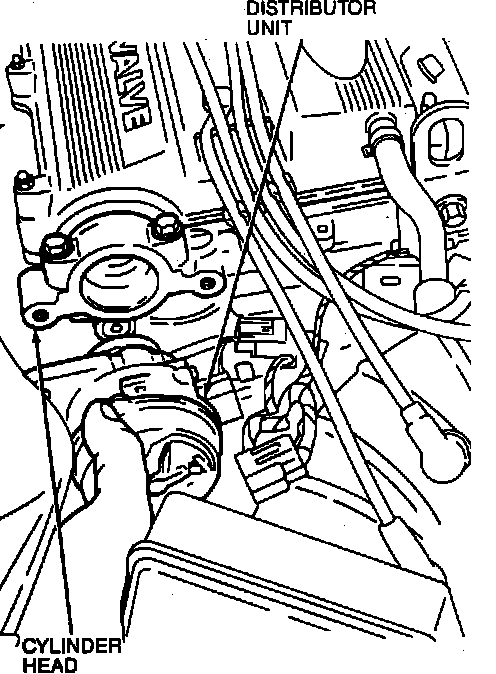 NOTE: When installing distributor unit, make sure that offset drive tangs engage with camshaft slots.