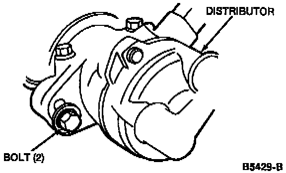 8. If marks are not aligned, loosen mounting bolts and turn distributor until timing is set at 10° ± 1° BTDC.