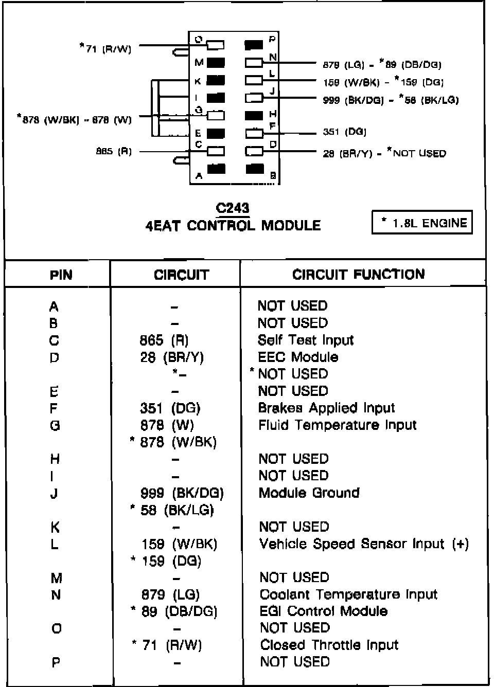 Control Module Pinout: