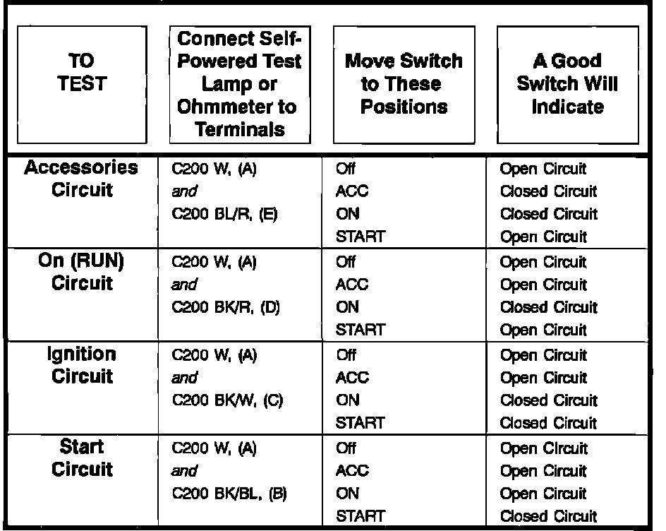 Ignition Switch: Testing and Inspection