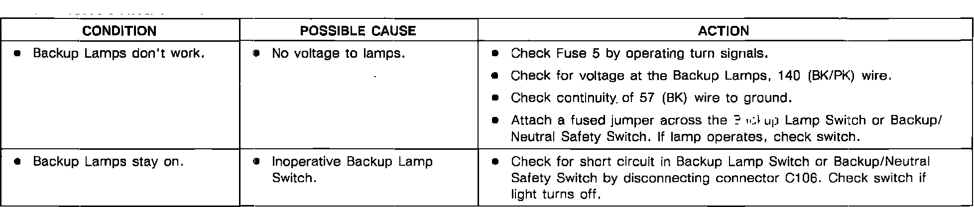 Backup Lamp: Testing and Inspection