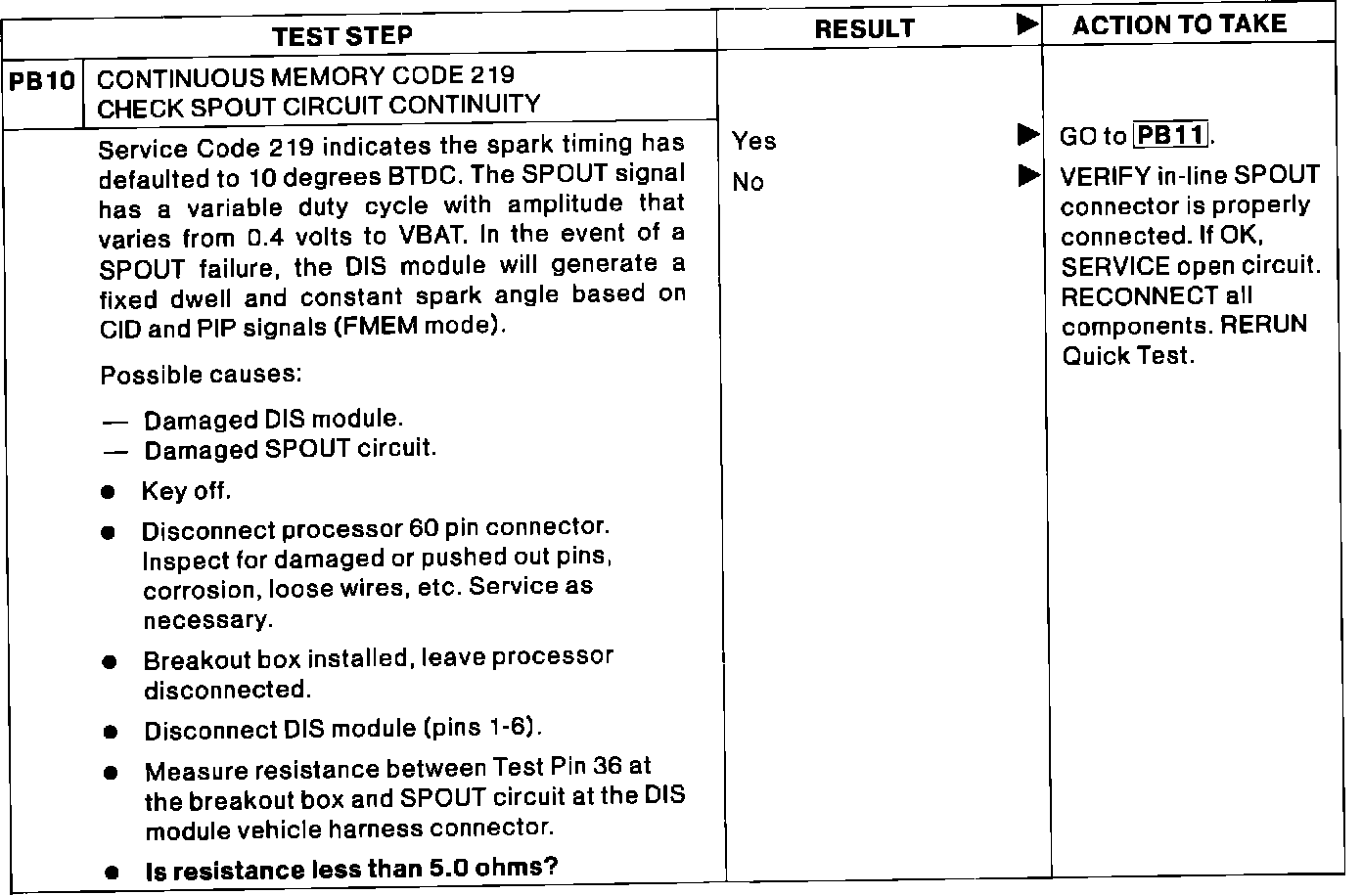 PB10 - Continuous Code 219: Check Spout Circuit Continuity