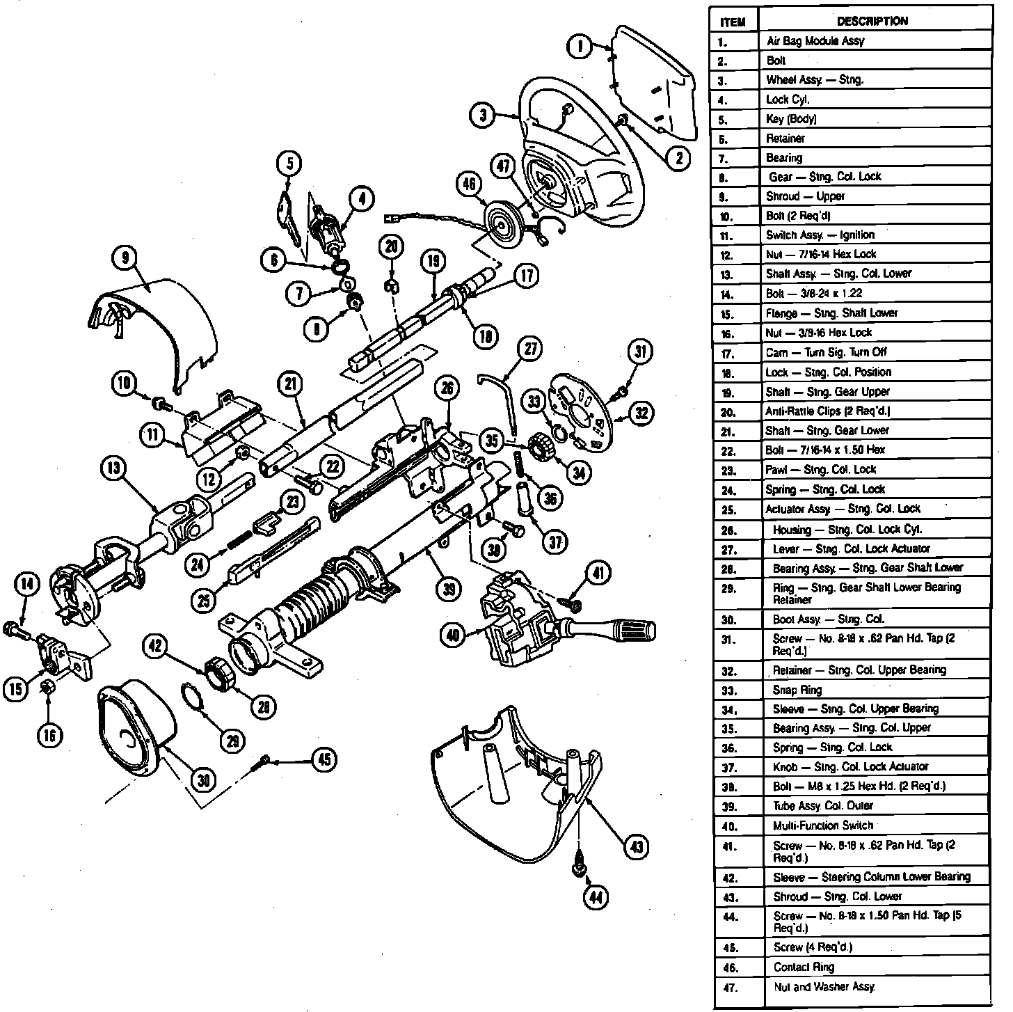 10. Lower column to clear the four mounting bolts, then pull column out, so that U-joint assembly passes through clearance hole in dash panel.