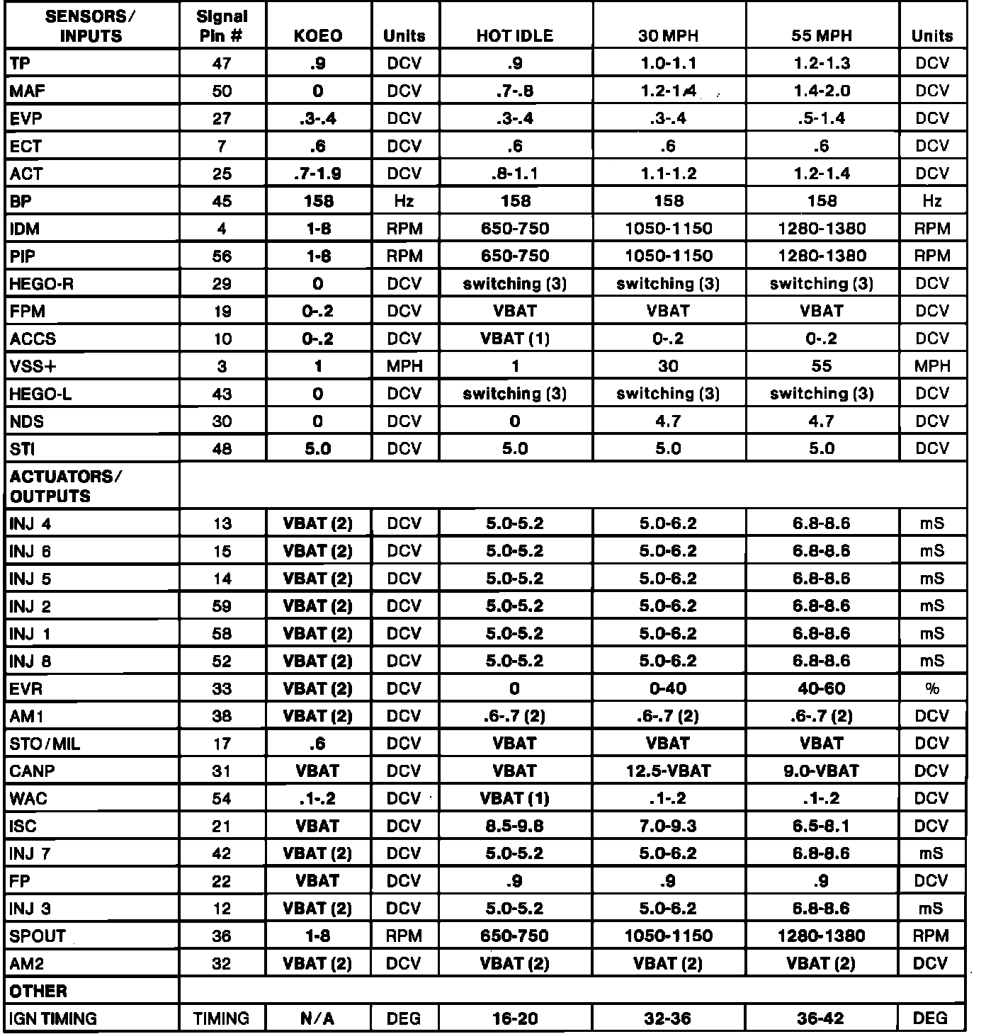 Normal Scan Data Values (Includes PIDs)