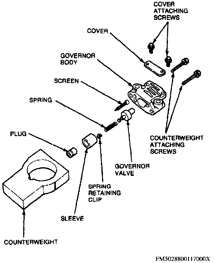 7. Position governor body on counterweight and install attaching screws, tightening to specification.