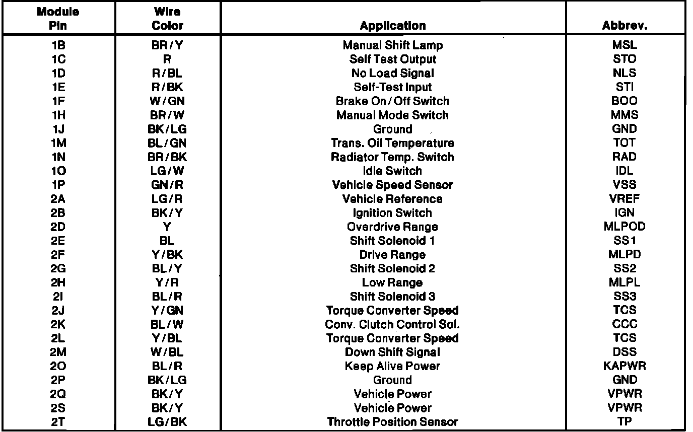 CONNECTOR PIN USAGE
