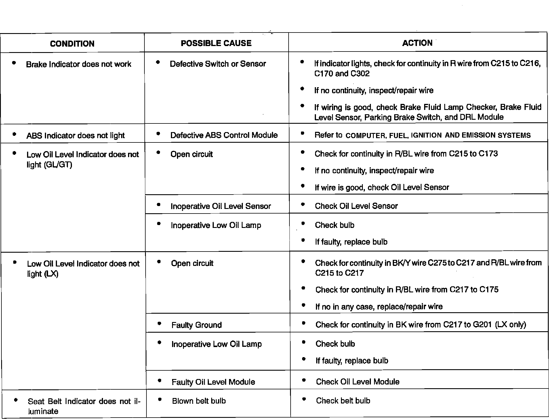 Instrument Panel, Gauges and Warning Indicators