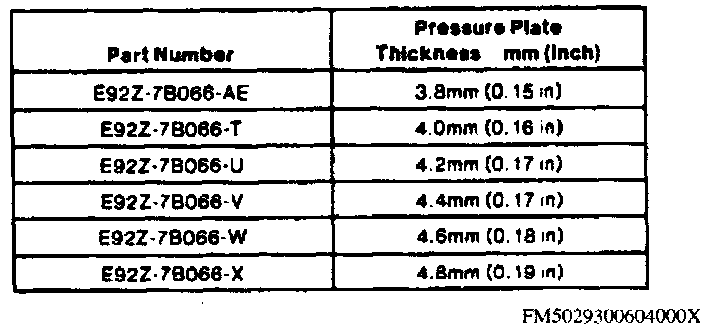 3-4 Clutch Pressure Plate Thickness Chart: