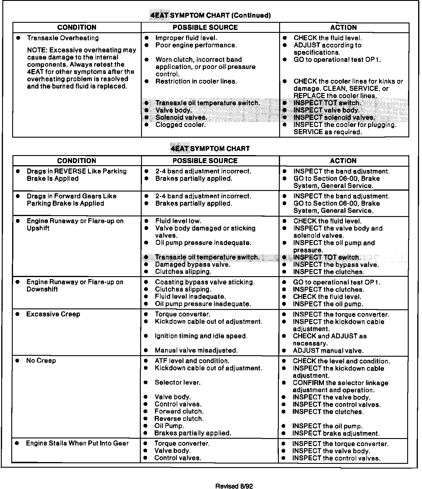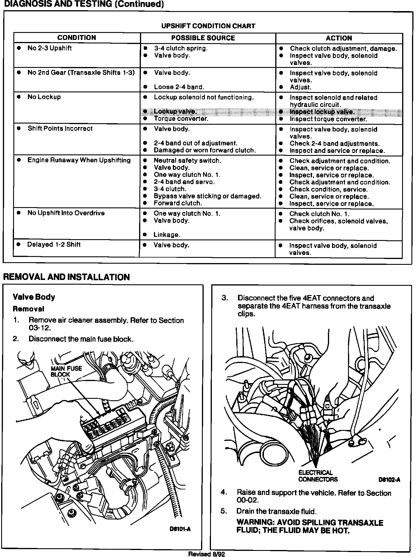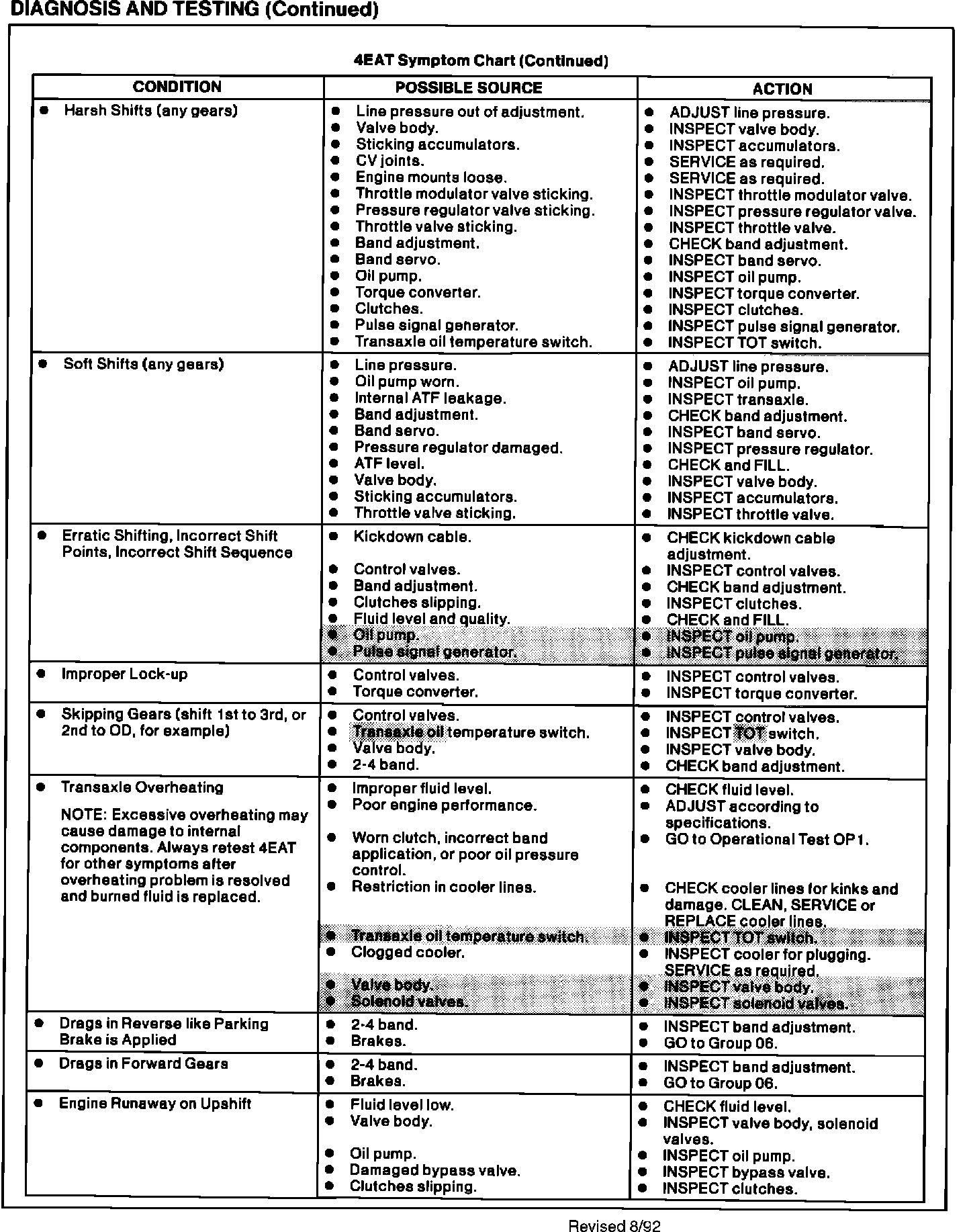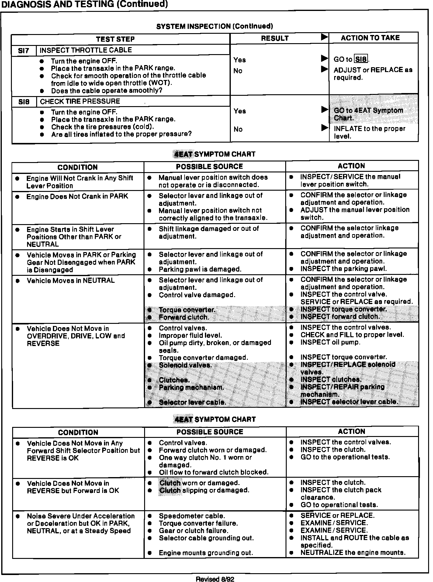 ^ SHOP MANUAL - 1992 - SECTION 07-01 - 4EAT TRANSAXLE DIAGNOSTIC INFORMATION REVISED