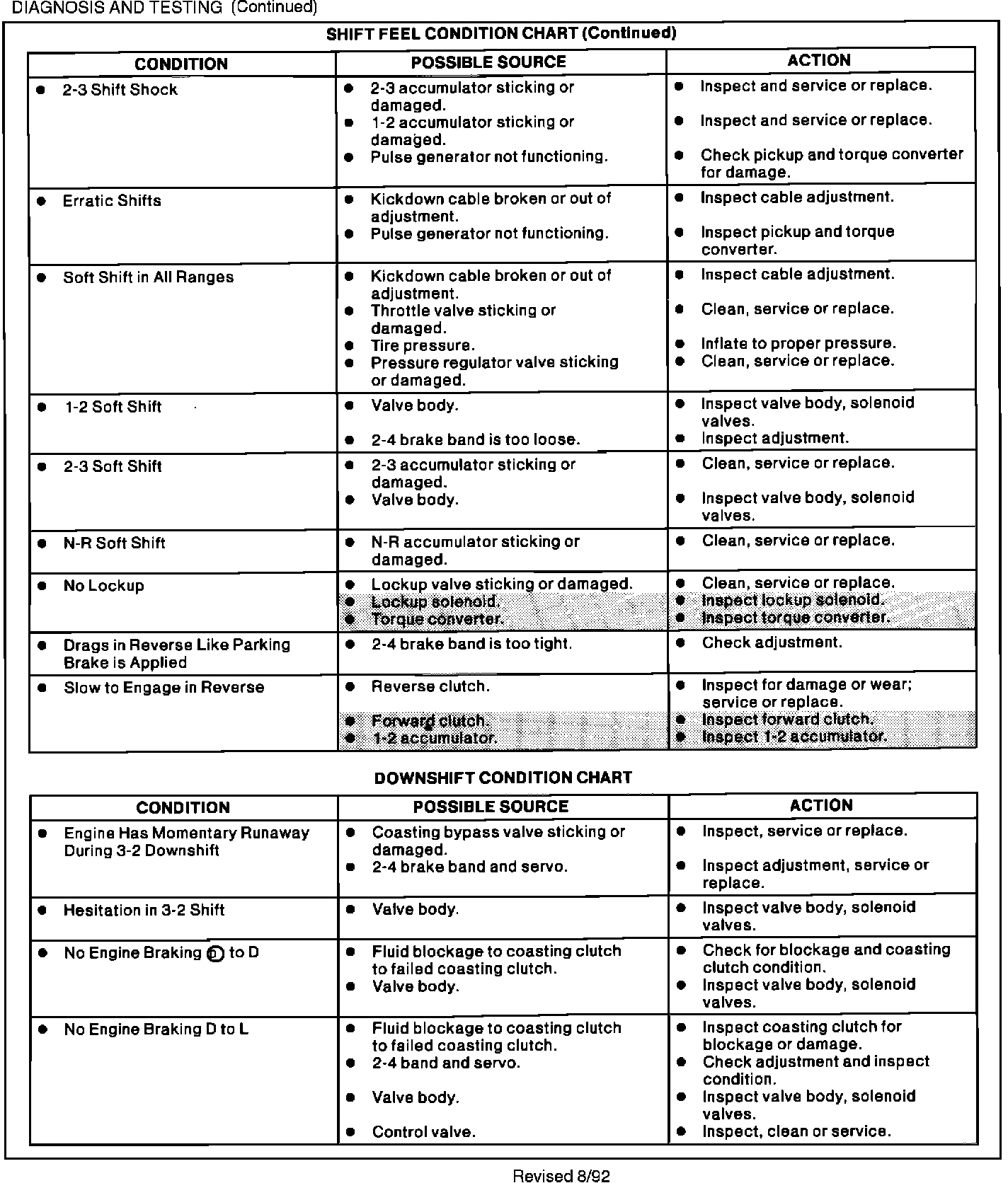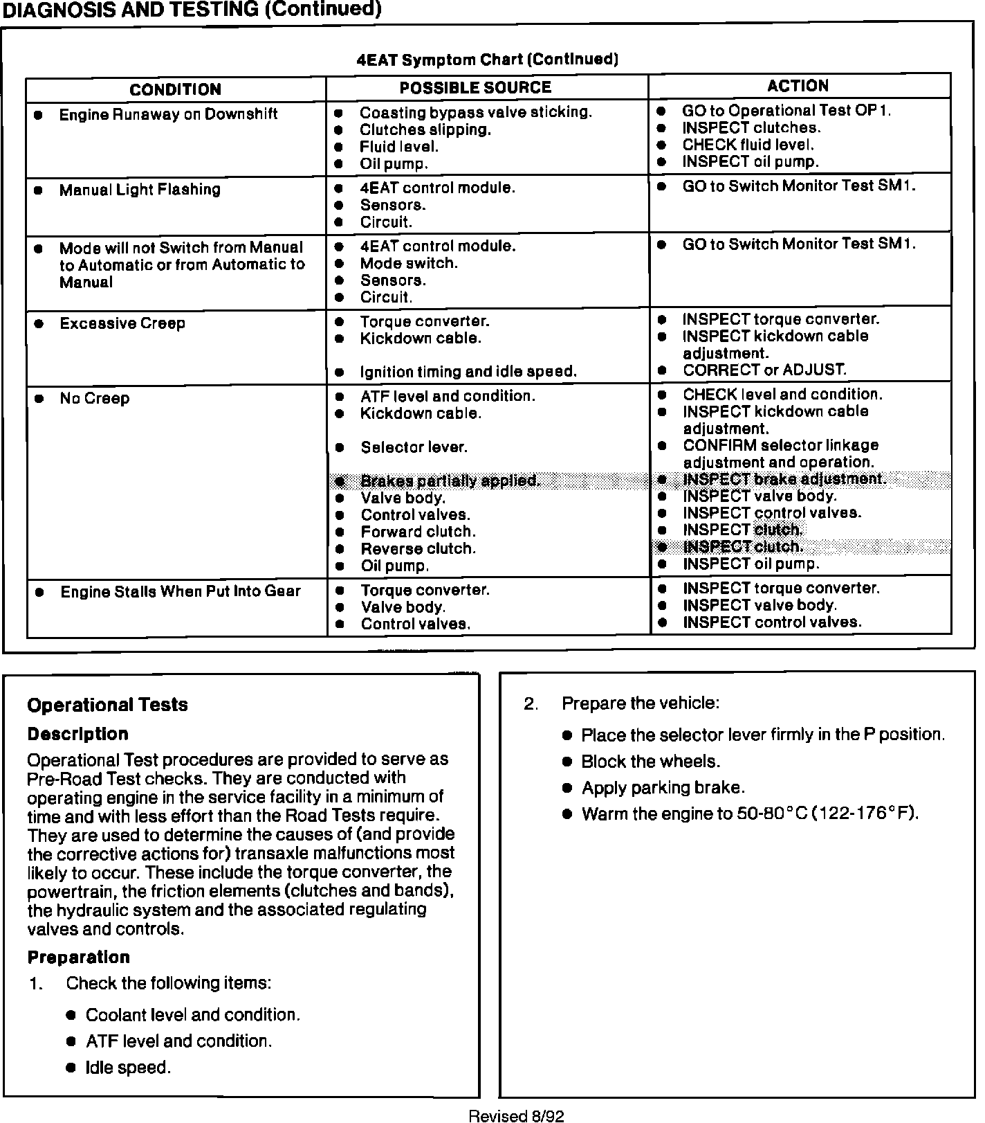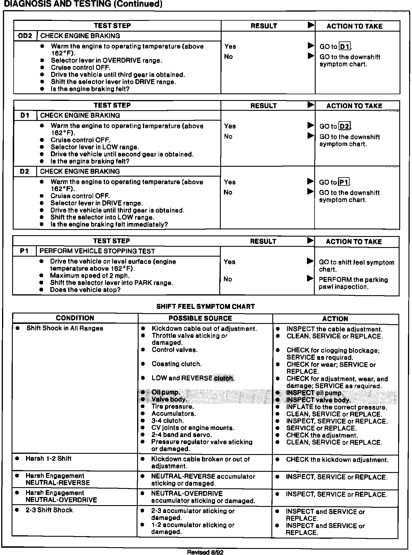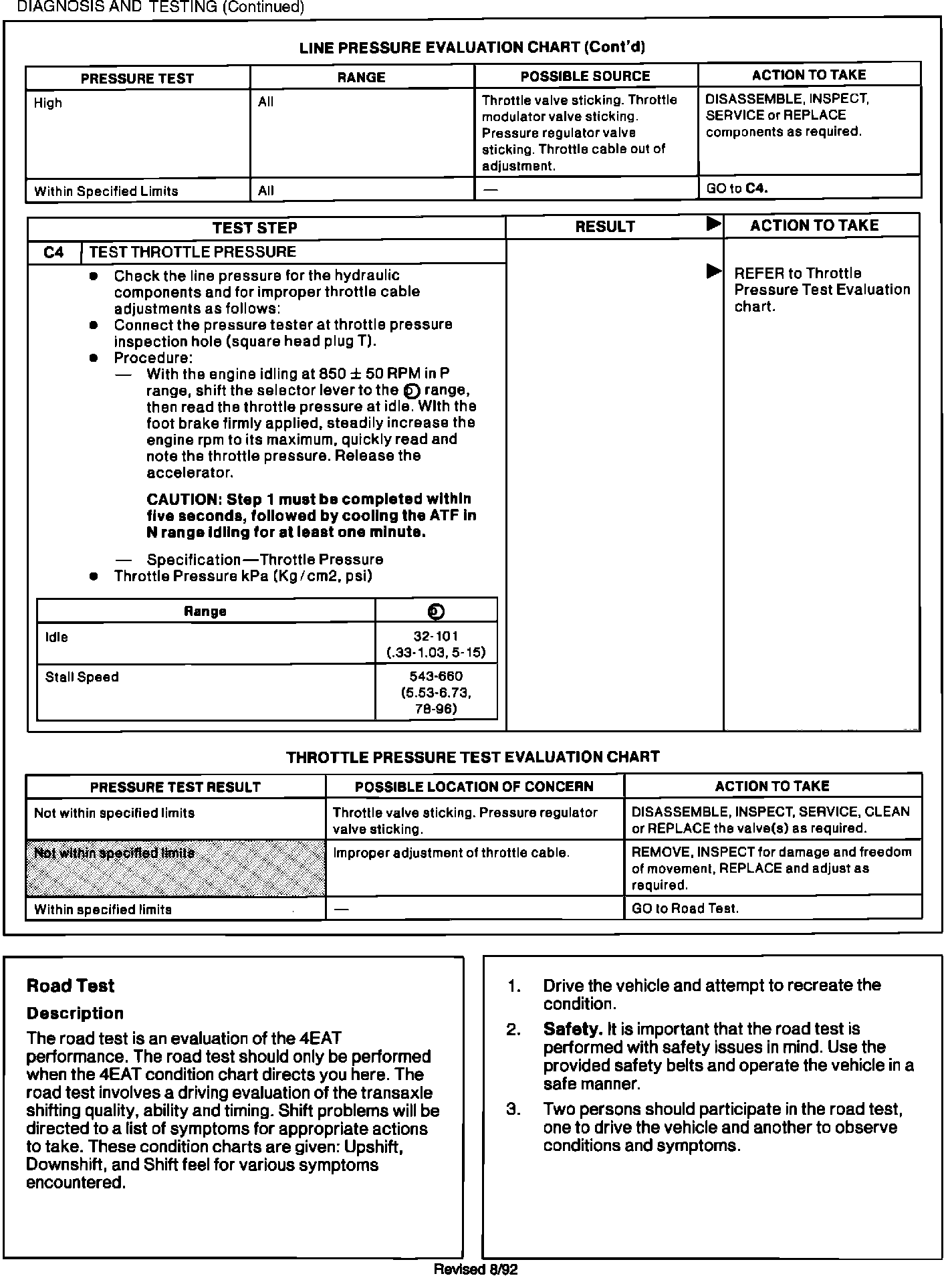 ^ SHOP MANUAL - 1992 - SECTION 07-01 - 4EAT TRANSAXLE DIAGNOSTIC INFORMATION REVISED
