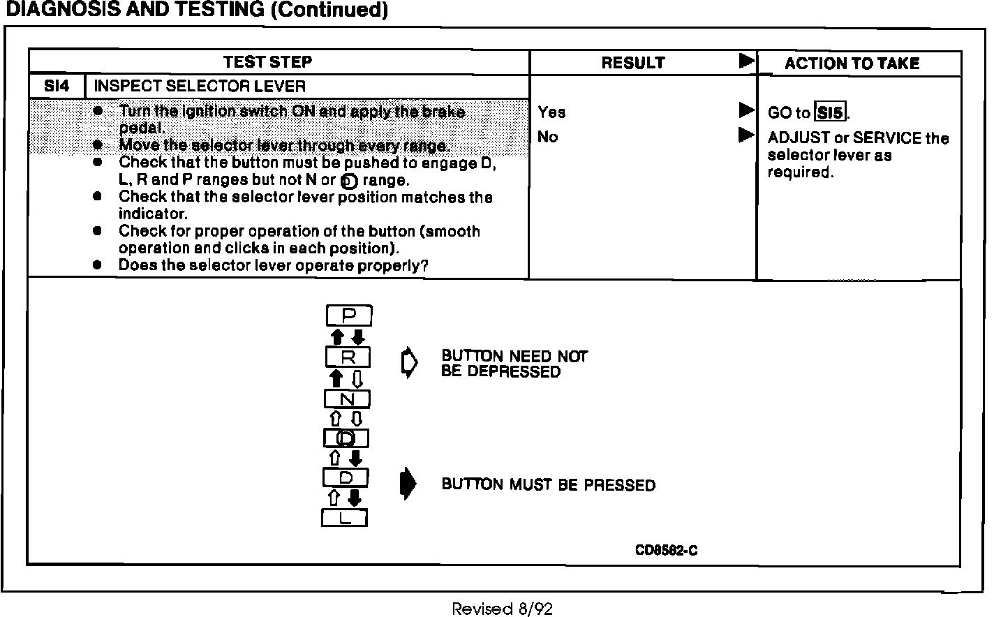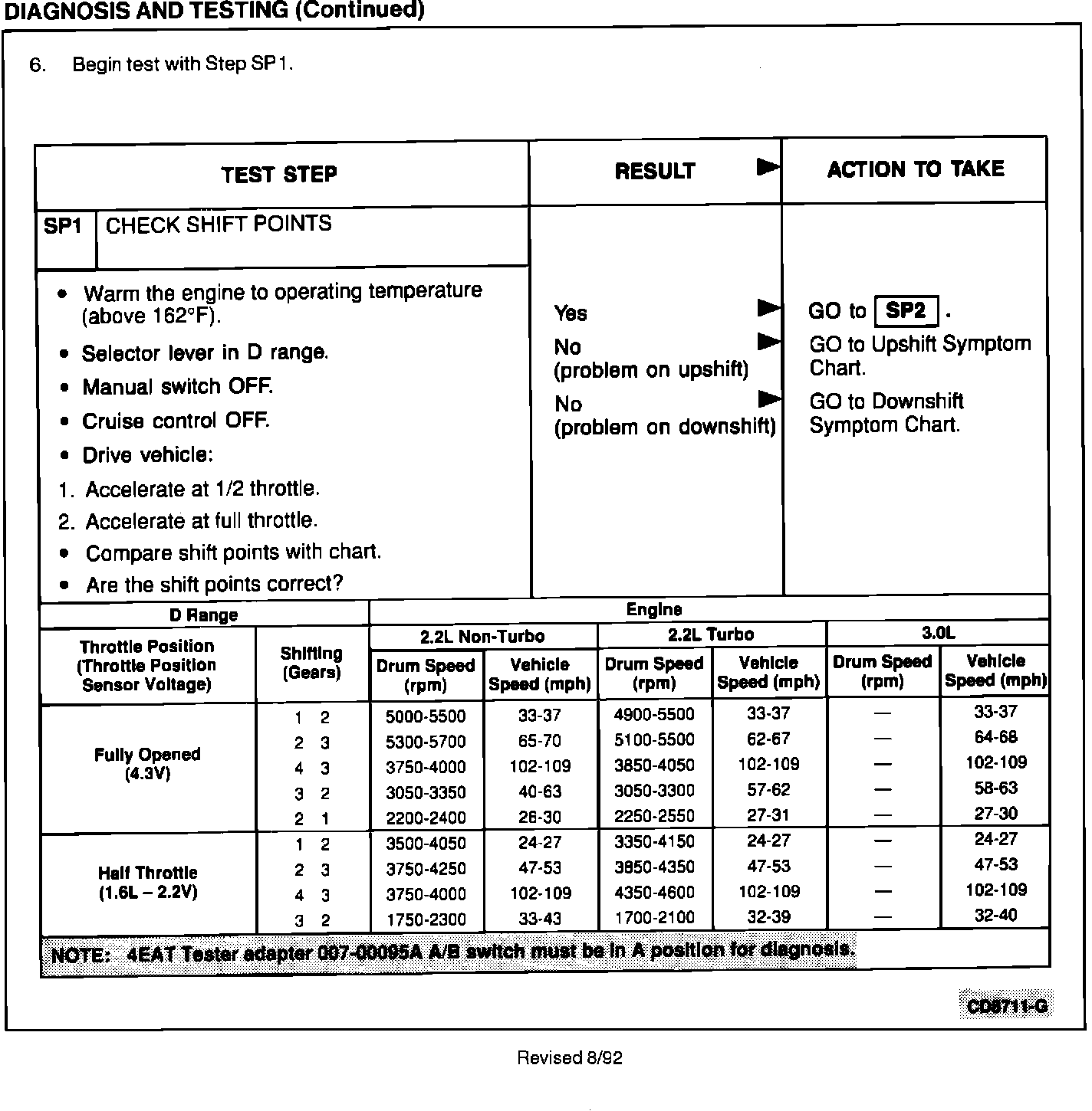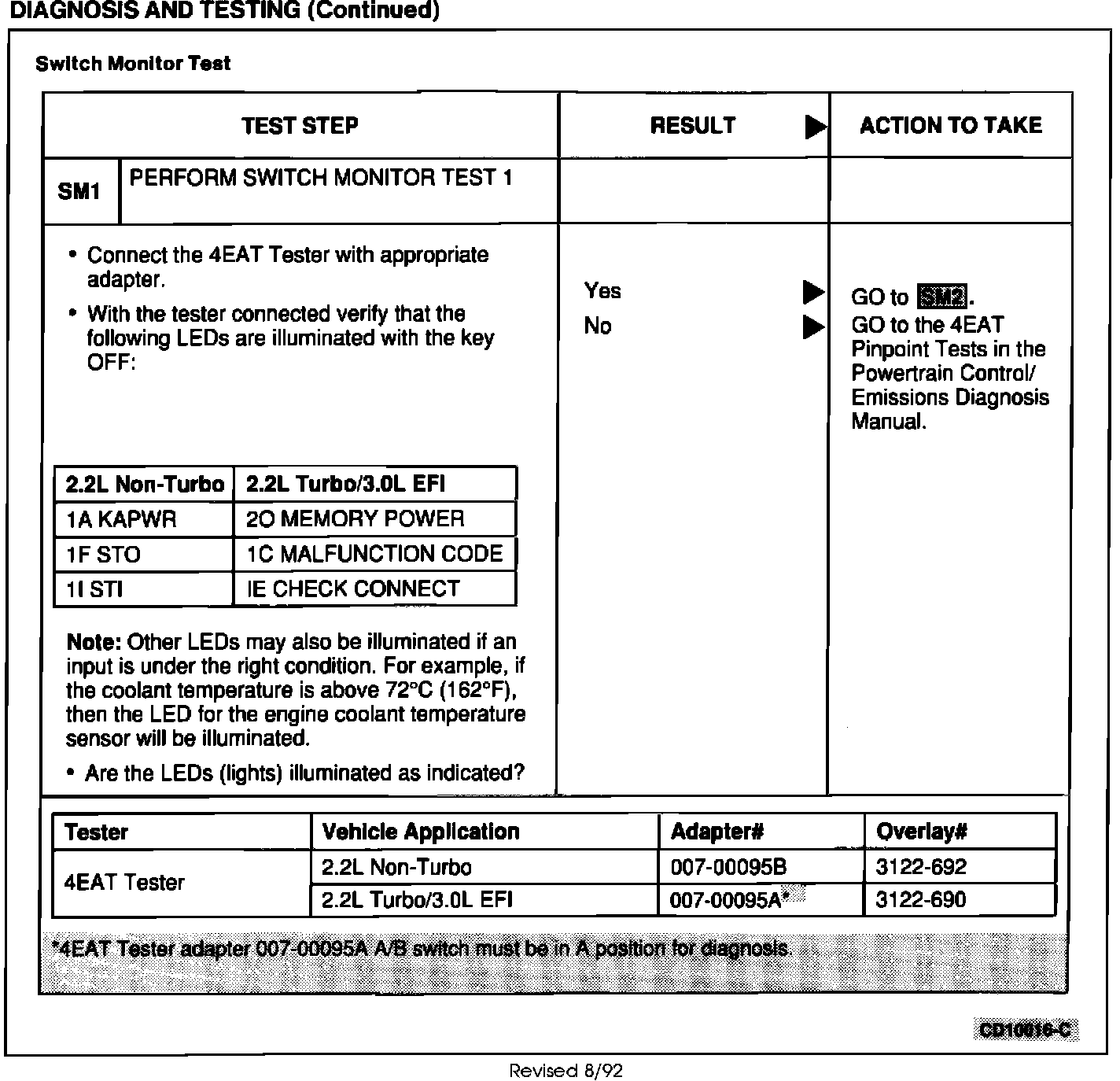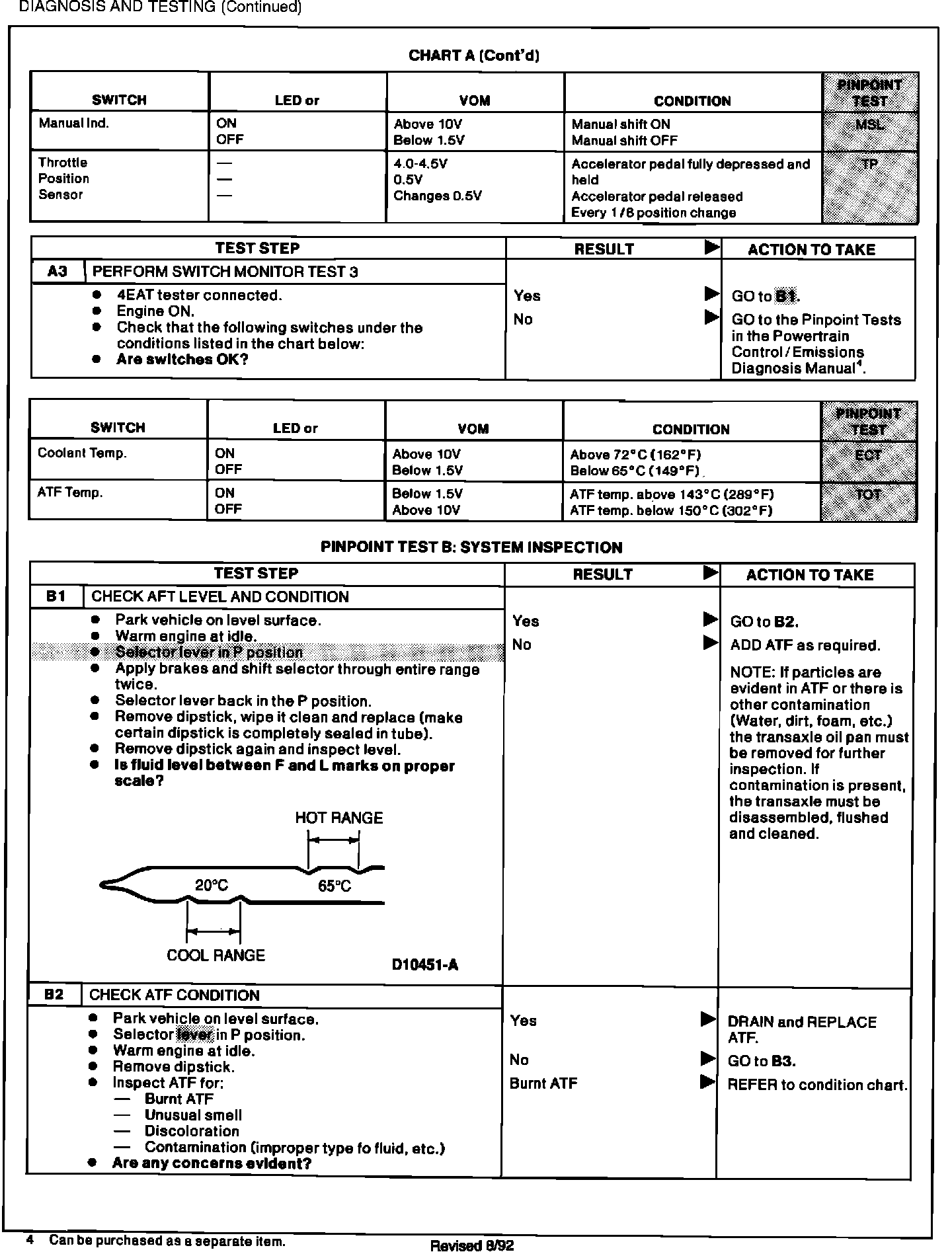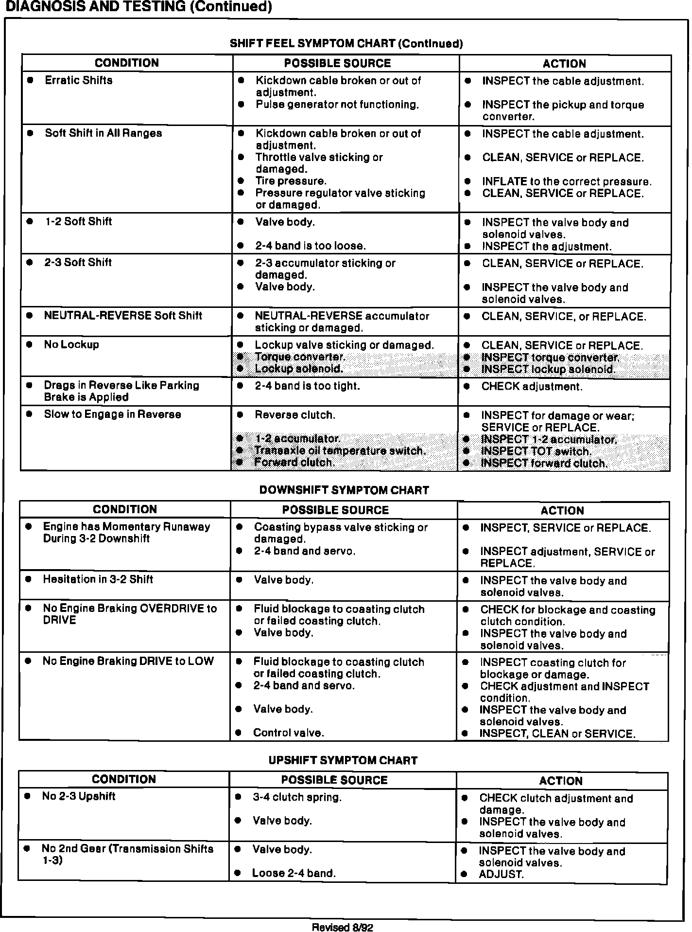 ^ SHOP MANUAL - 1992 - SECTION 07-01 - 4EAT TRANSAXLE DIAGNOSTIC INFORMATION REVISED