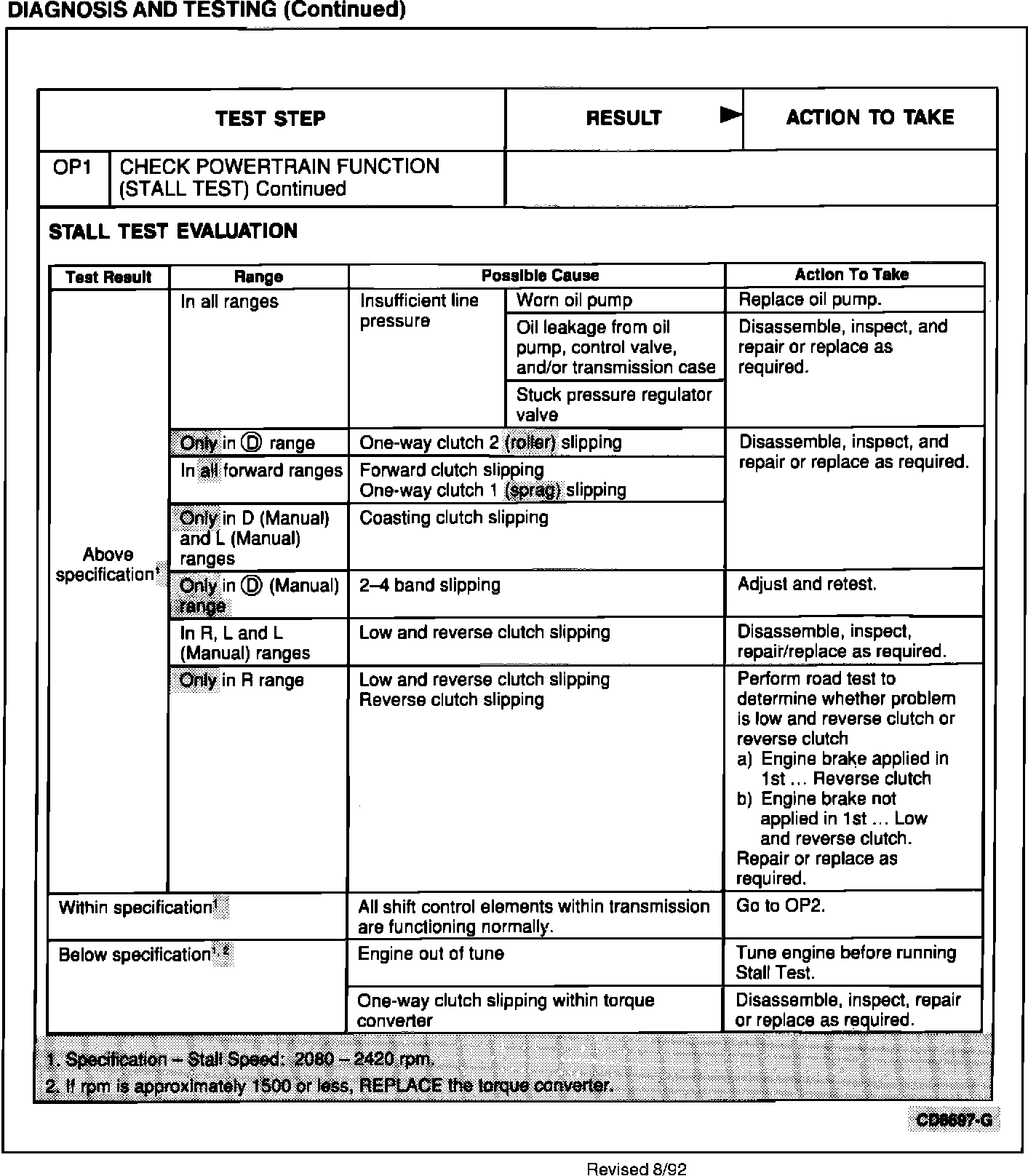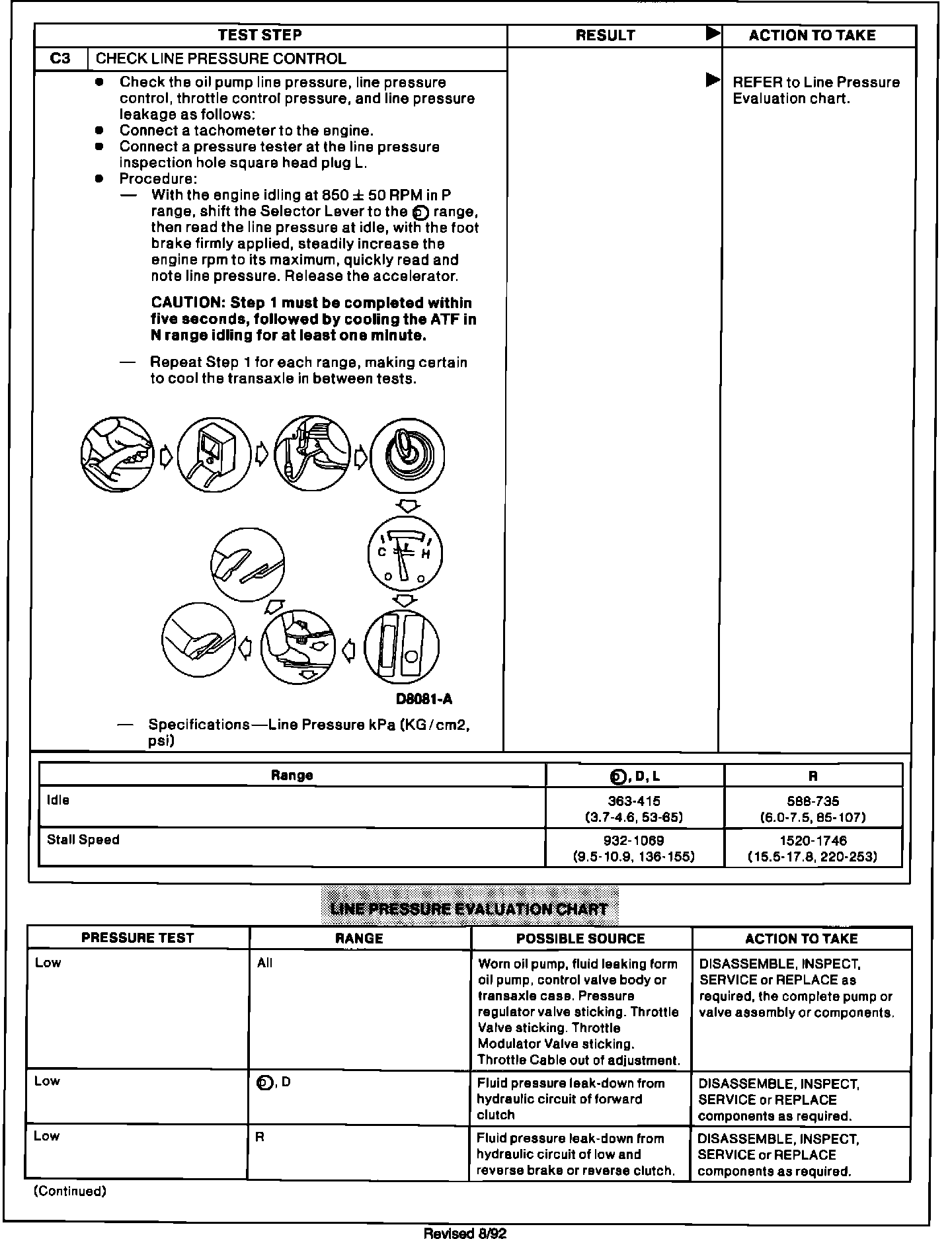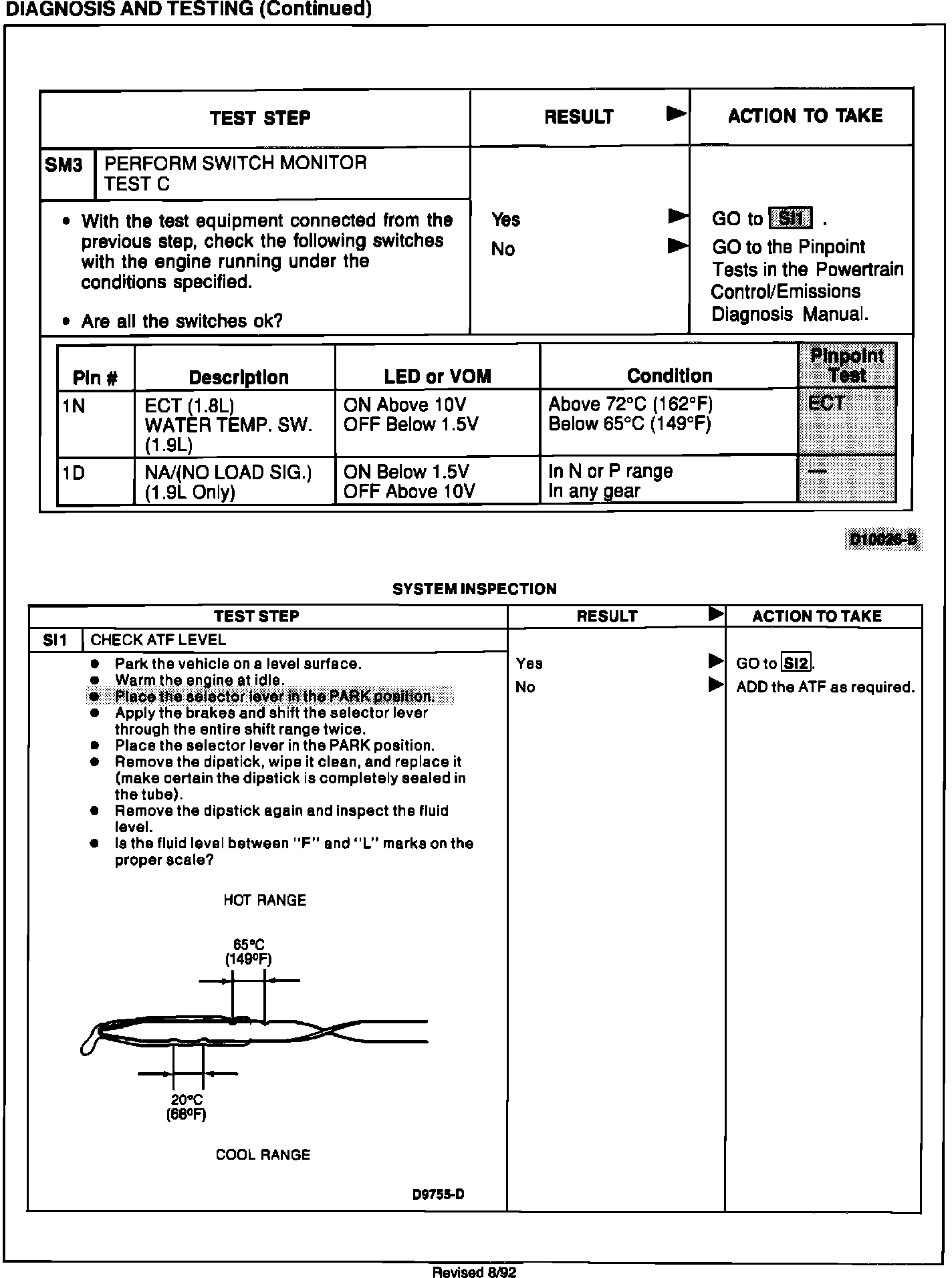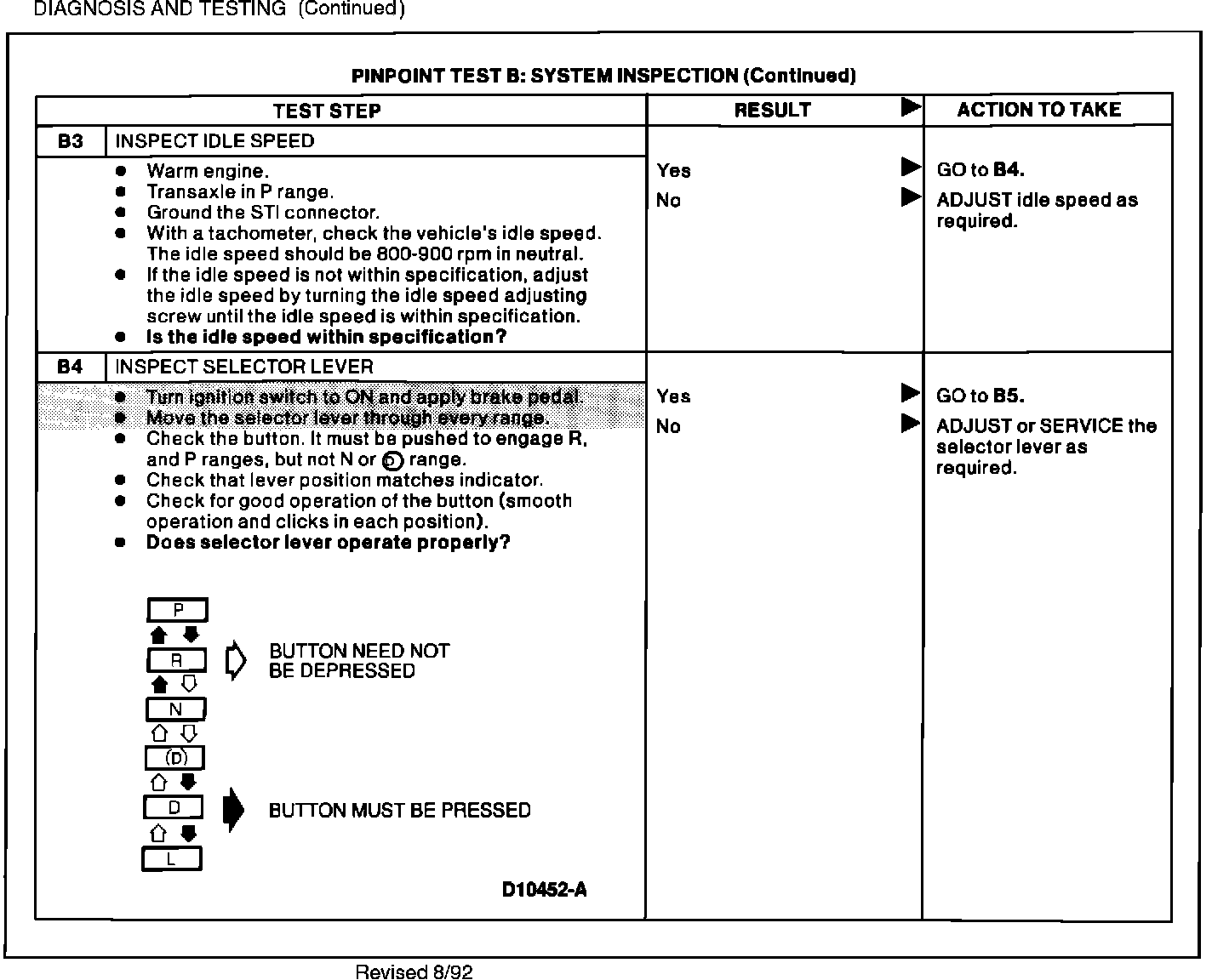 ^ SHOP MANUAL - 1992 - SECTION 07-01 - 4EAT TRANSAXLE DIAGNOSTIC INFORMATION REVISED