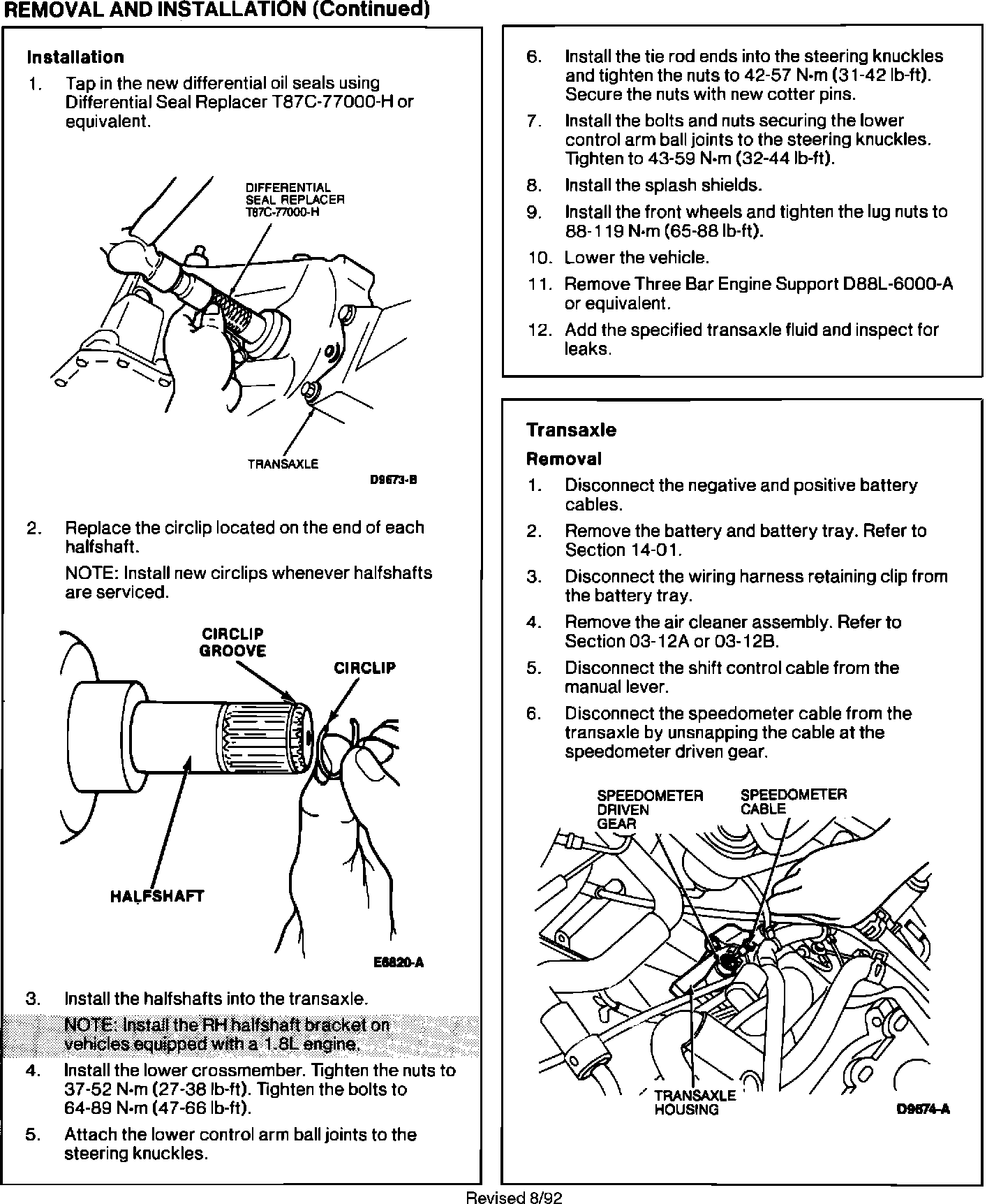^ 1992 Probe Service Manual: 07-01-12, 14 through 19, 22 through 24, 26, 29 and 30, 34, 40, 41, 80 and 81