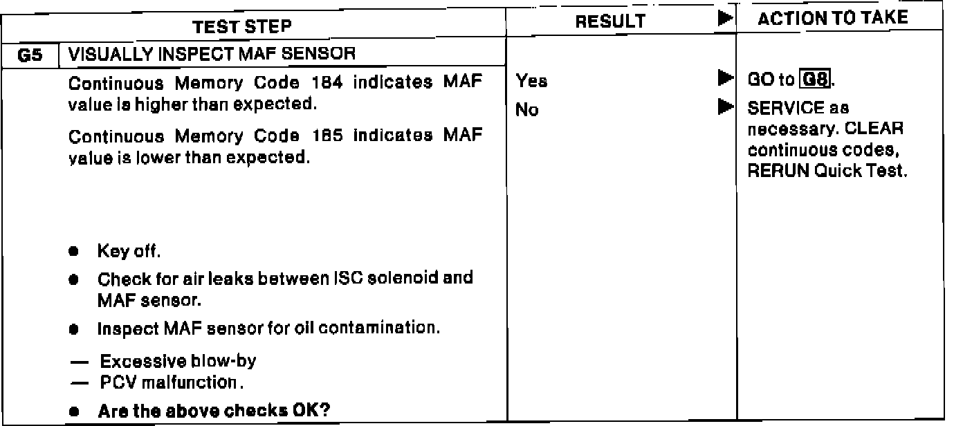 G - In-Range MAF/TPS/Fuel Injector Pulse Width Test