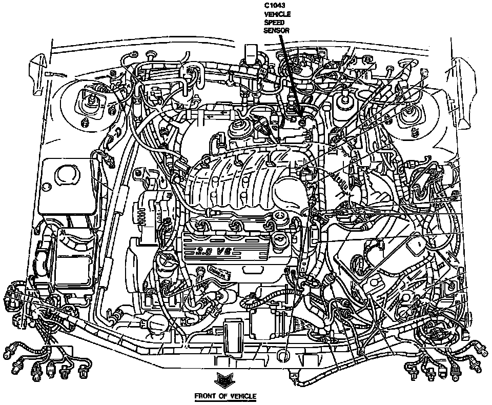 , (C1043), is located at the lower LH rear of engine, on the transaxle.
