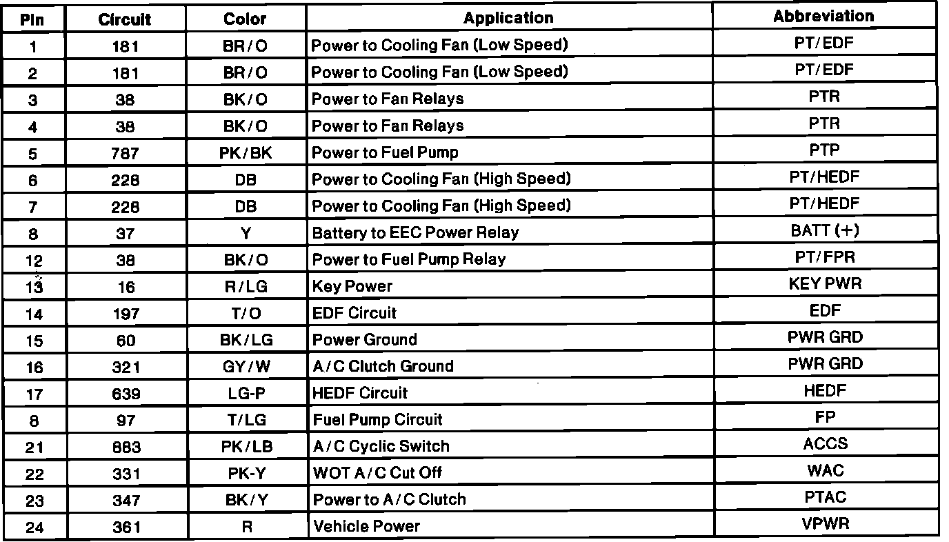 Integrated Relay Control Module (IRCM) Pinout: