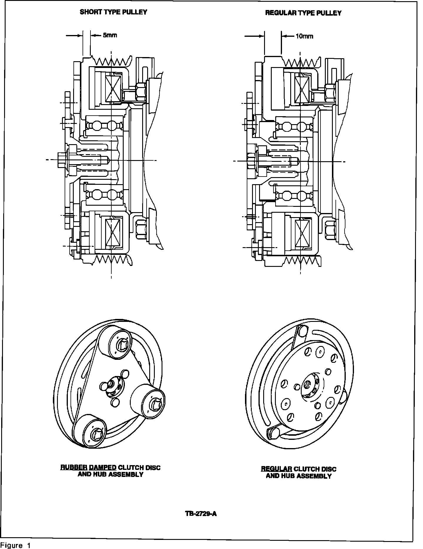 Refer to Figure 1 for the pulley and clutch disc and hub identification.