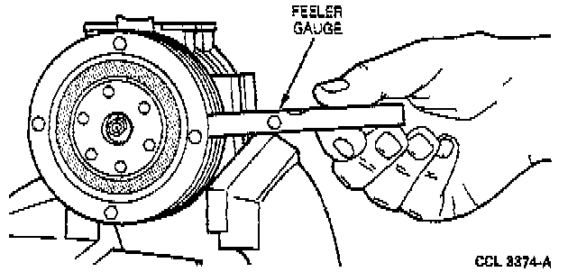 6. Check the air gap between the hub and the mating pulley surface in three locations equally spaced around the pulley. Record the air gap readings.