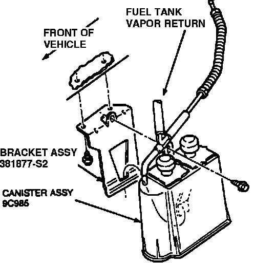 2. Remove the screw securing the canister to the bracket or fender apron.