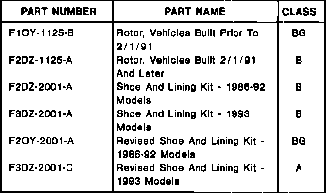 NEW STYLE LINING KITS F20Y-2001-A AND F3DZ-2001-C ARE NOT TO BE USED ON "SHO" OR POLICE MODELS. THEY ARE NOT SUITABLE FOR PERFORMANCE OR SEVERE SERVICE APPLICATIONS.