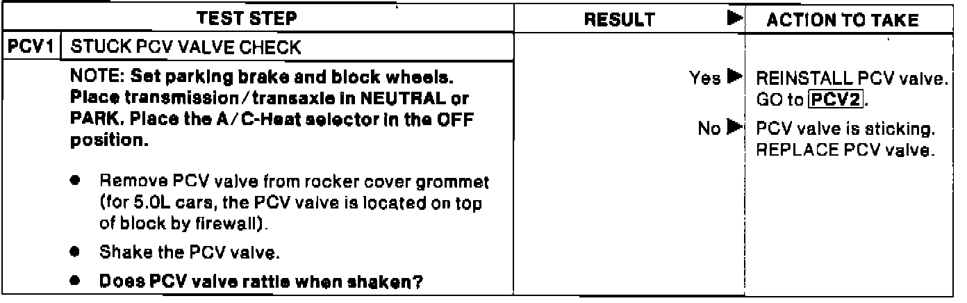 PCV 1 - Stuck PCV Valve Check