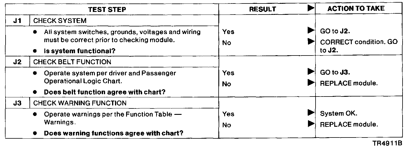 Pinpoint Test J: Passive Restraint Module Diagnosis