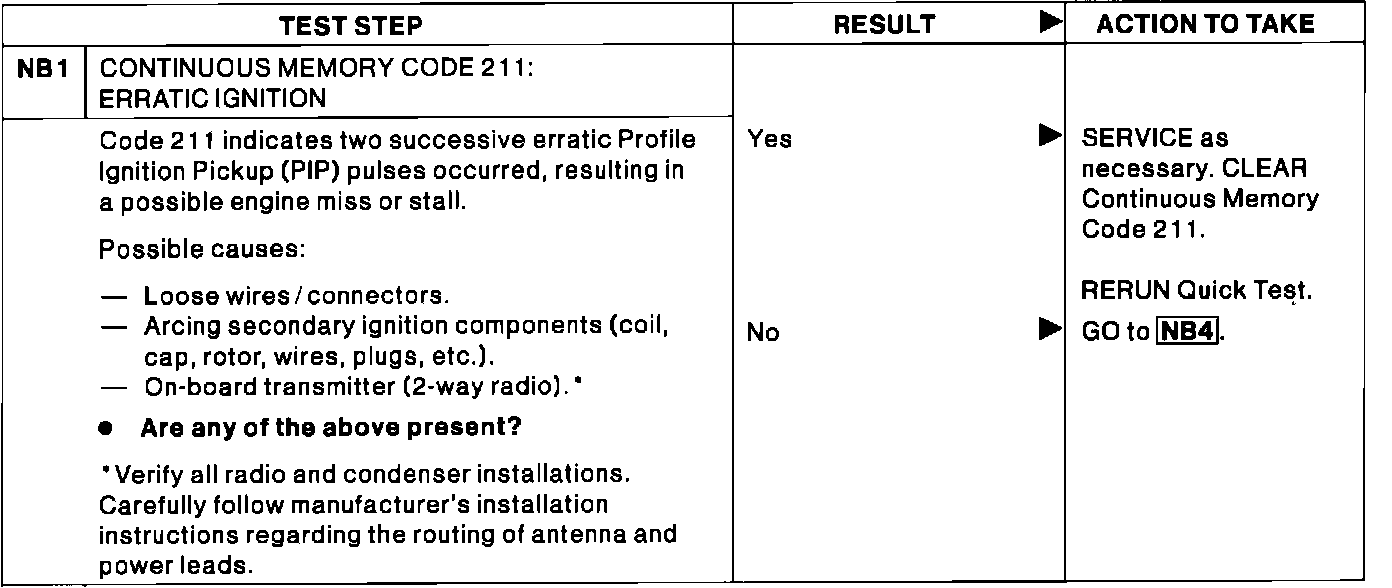 NB1 - Continuous Code 211: Erratic Ignition