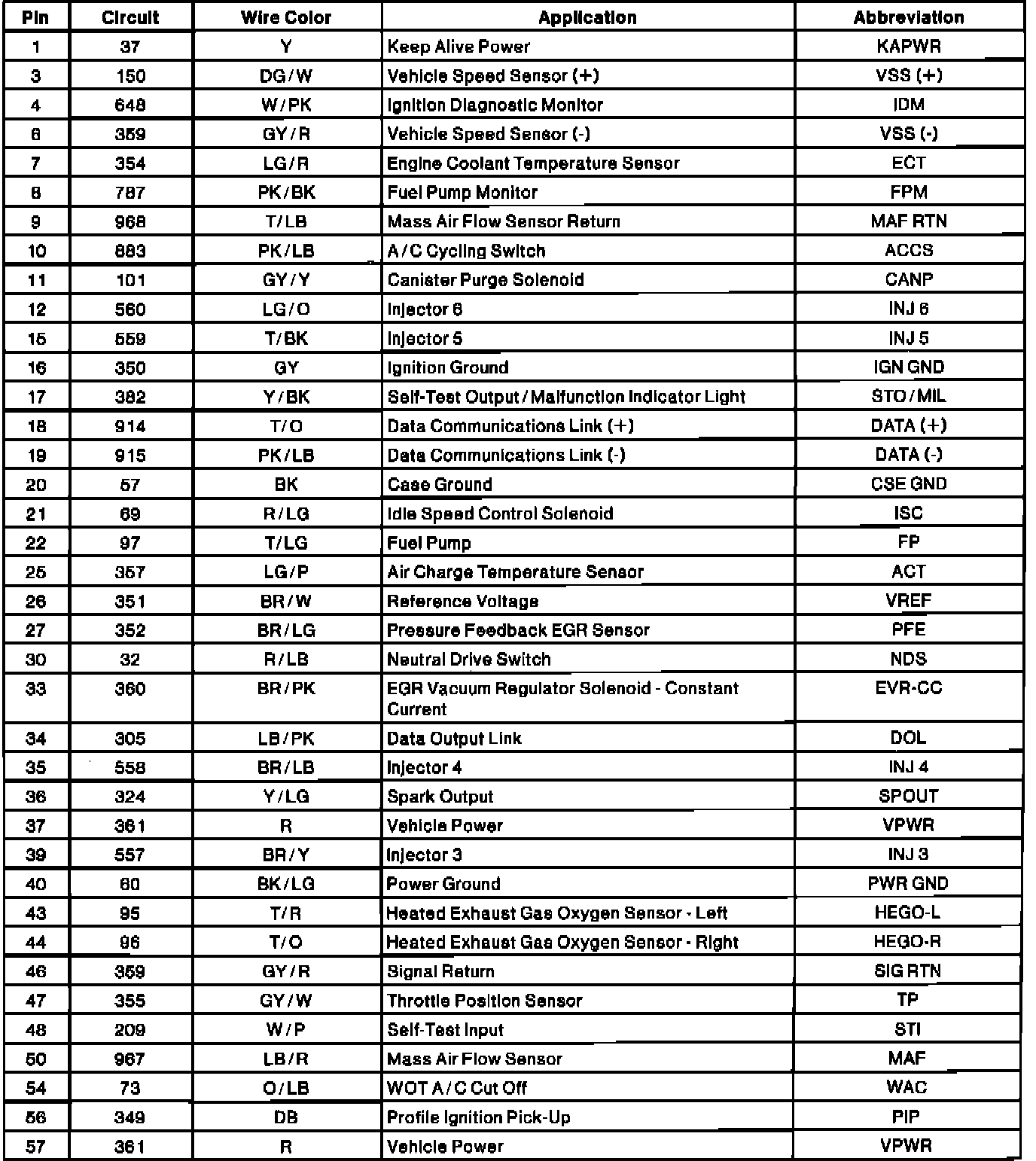 Electronic Engine Controller Connector Pinout: