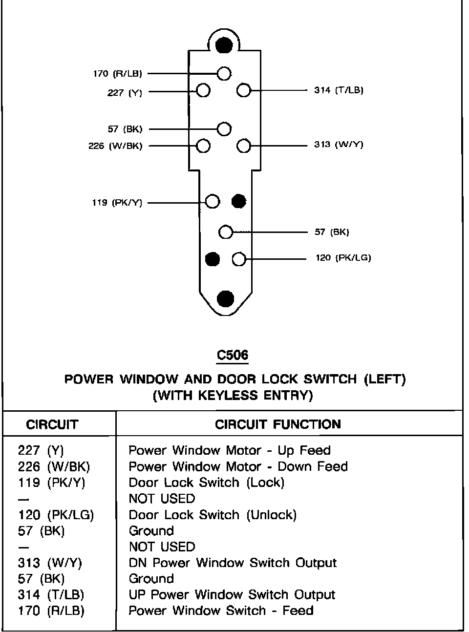 Power Window And Door Lock Switch (Left) (With Keyless Entry):