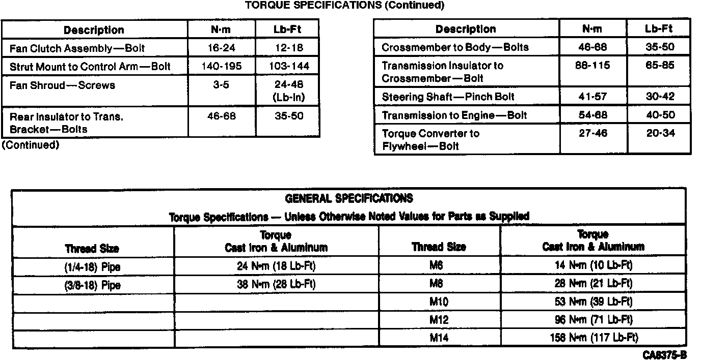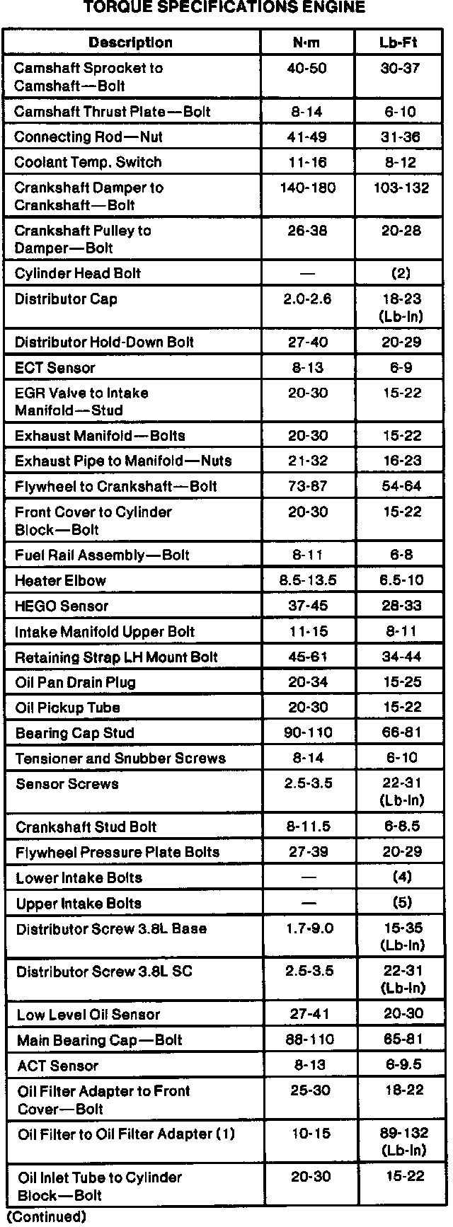 Torque Specifications: