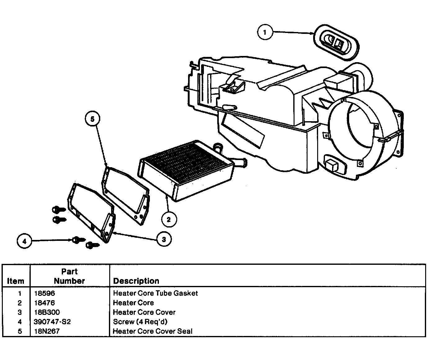 1. Install the heater core in the A / C evaporator housing with the tube gasket on the outside of the case.