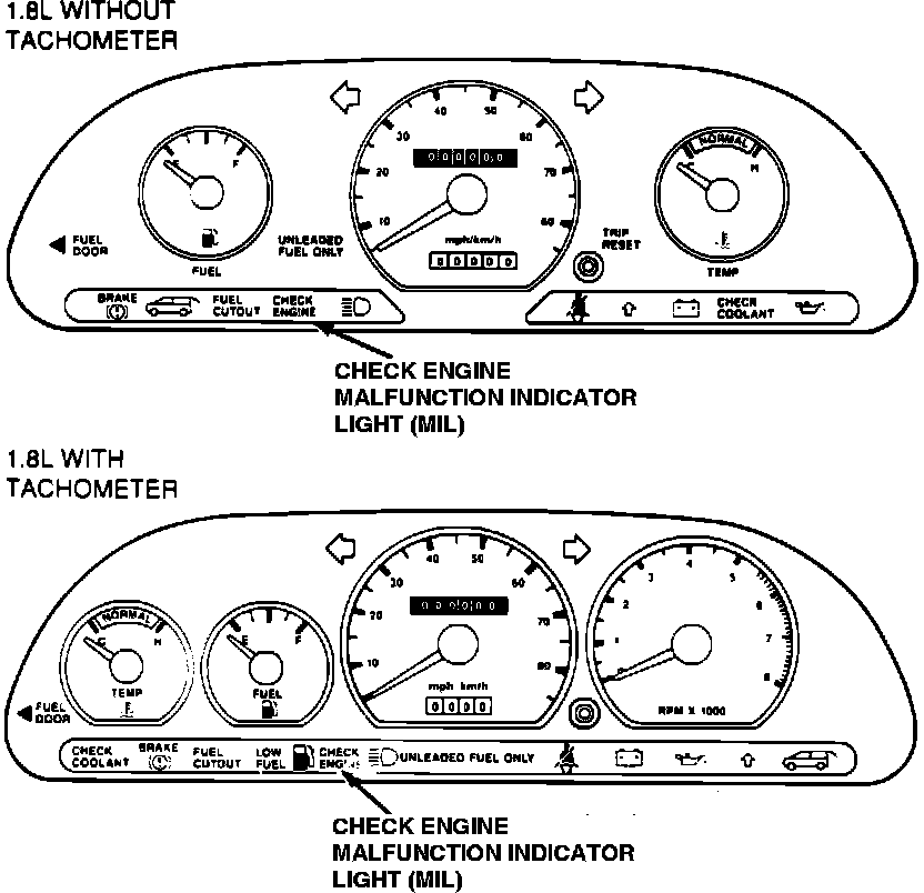 The Malfunction Indicator Light (MIL) is mounted in the instrument cluster. The light will illuminate when the system has detected a fault and is operating in Limited Operating Strategy (LOS). It will stay ON as long as there is a fault is present. MIL can also be used to retrieve fault codes when the self test mode is entered.