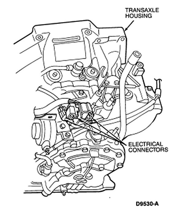 4. Connect the electrical connectors located on the top and on the side of the transaxle.