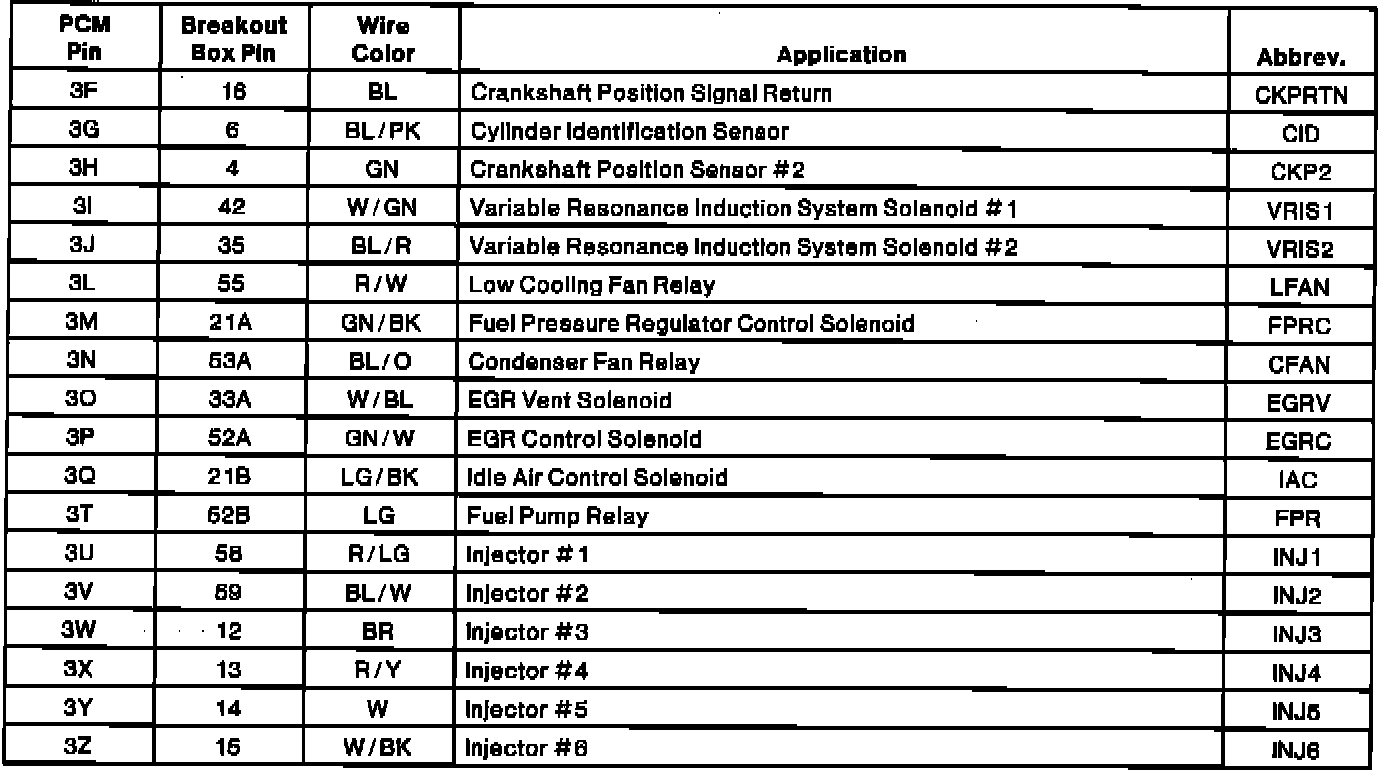 PCM Connector Pin Chart (Part 2, M/T):