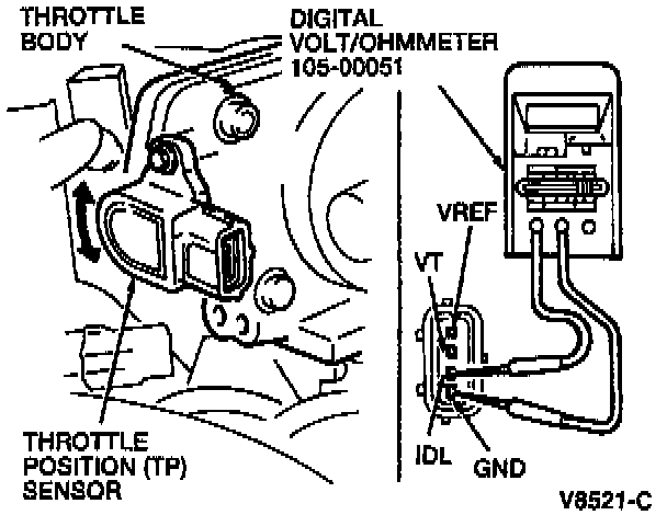 1. Disconnect the Throttle Position (TP) sensor connector.Idle Switch: