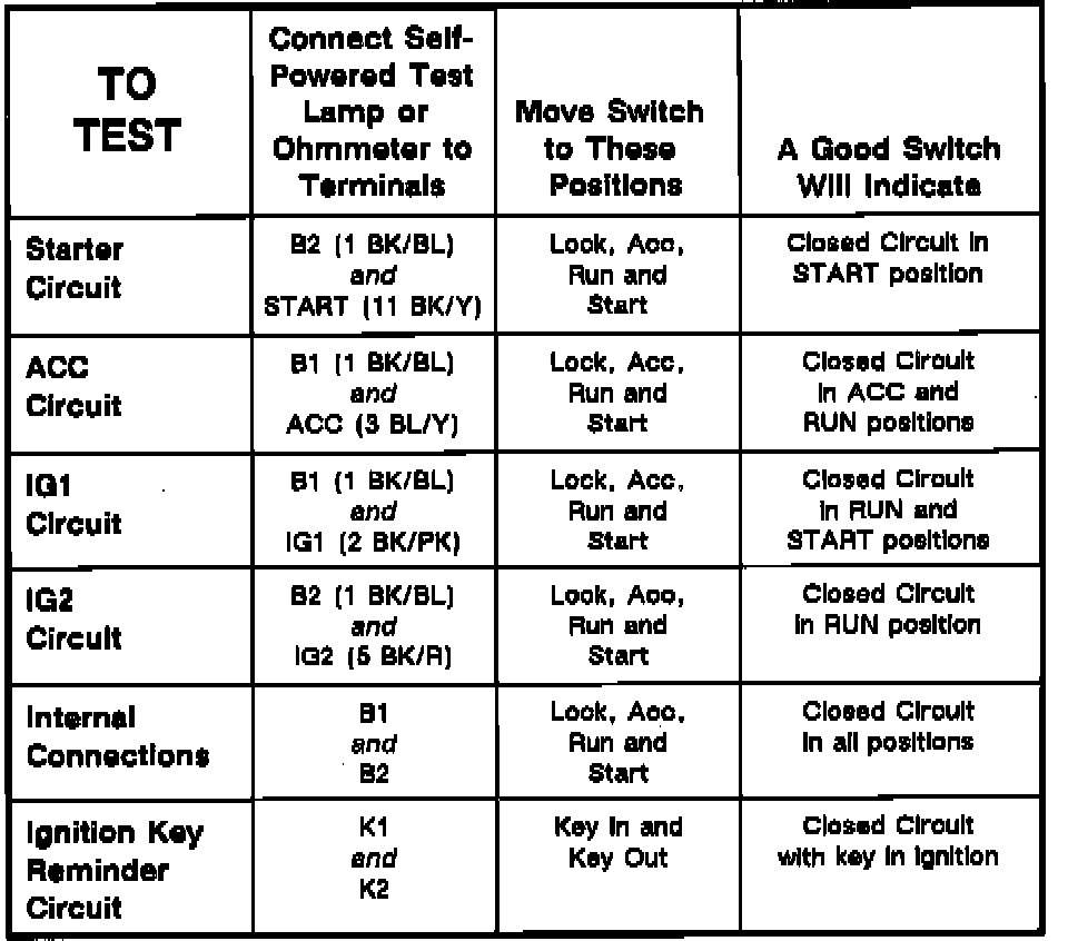 Ignition Switch: Testing and Inspection