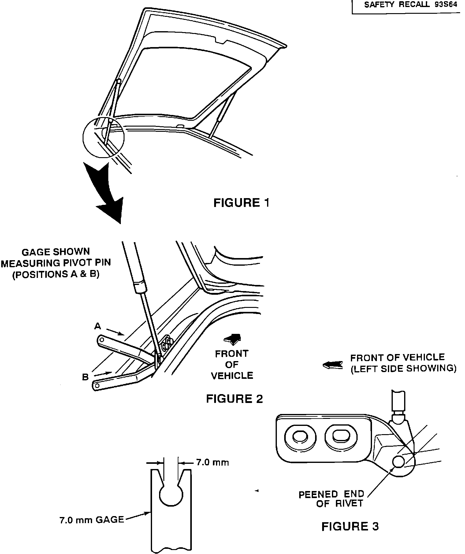 2. Measure the diameter of the peened end (bracket side) of the rivet (see Figure 3) that attaches the liftgate strut, using the 7.0 mm gauge provided. It should be measured in at least two different places. See A & B, Figure 2.