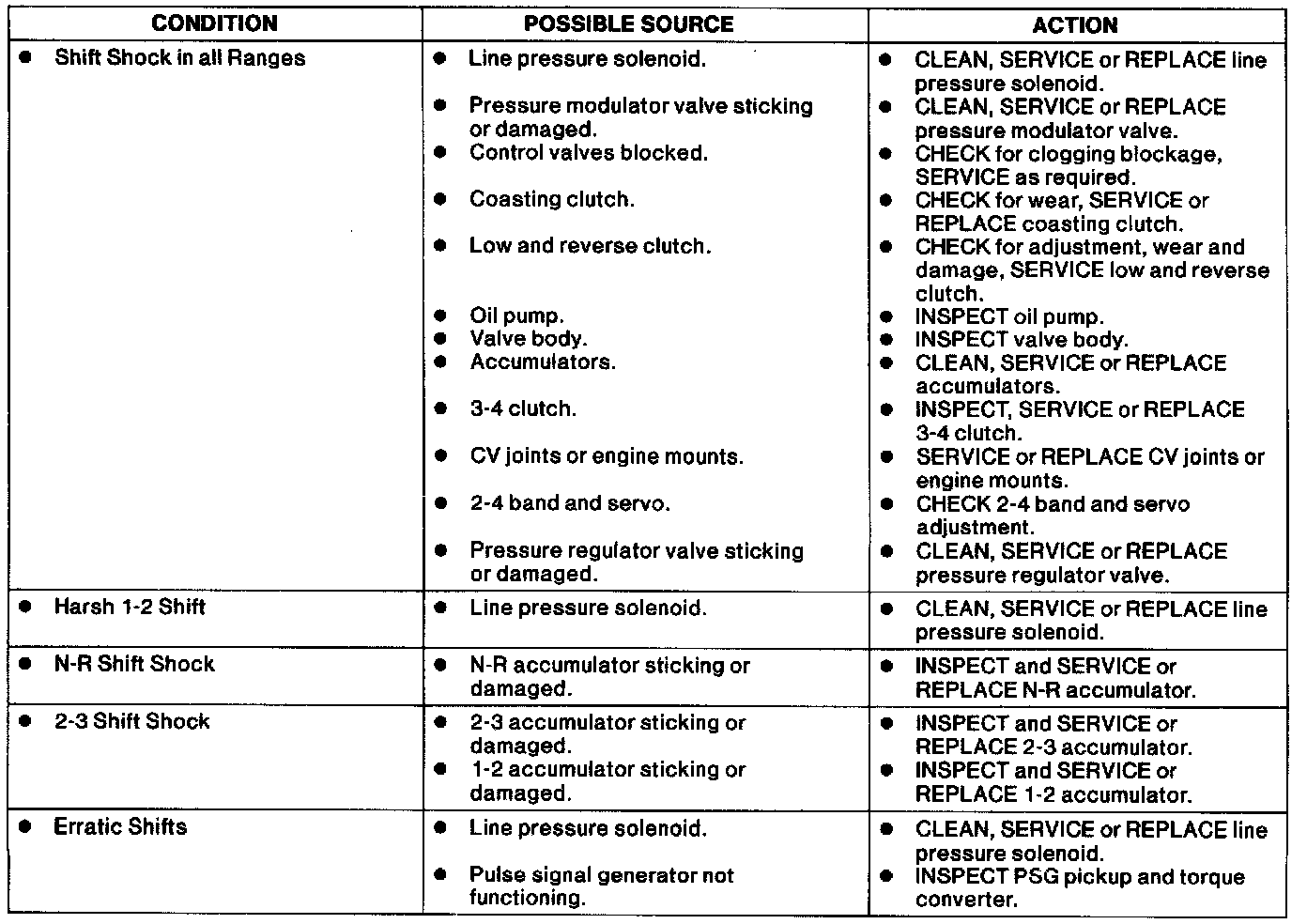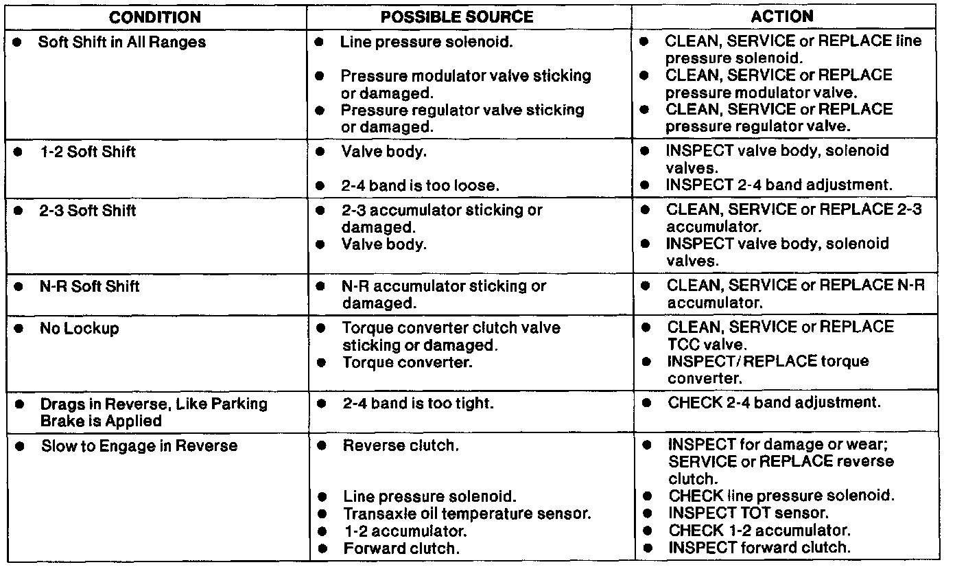 Shift Feel Symptom Chart.: