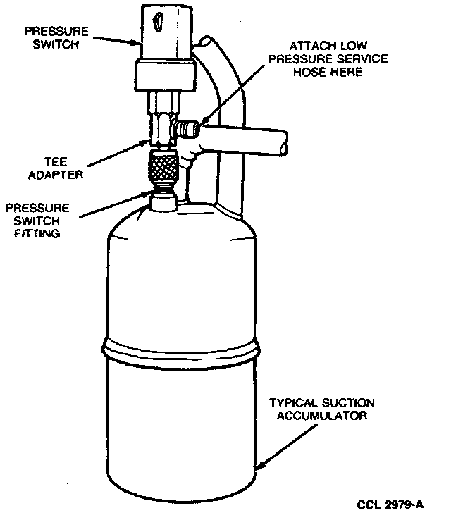 With the Tee Adapter Tool installed in this manner, the refrigerant system can be operated under normal conditions with clutch cycling pressure switch control and evaporator (suction) pressure can be observed. This will give a more accurate low-pressure reading than can be obtained from a low-pressure gauge port located in the suction line or near the the compressor.