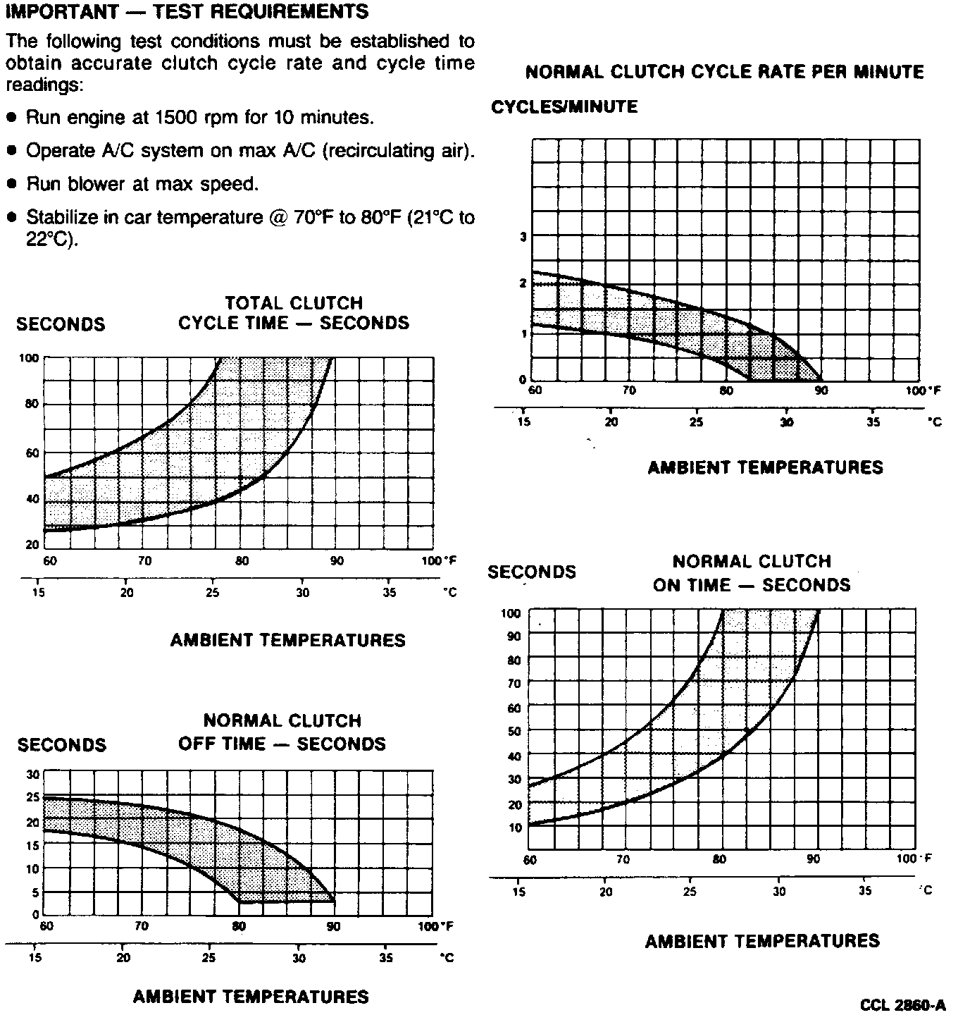In ambient temperatures above 27° C (80° F), the compressor clutch will not normally cycle off. This will depend on local conditions and engine/vehicle speed. Also, clutch cycling will normally not occur when the engine is operating at curb idle speed.