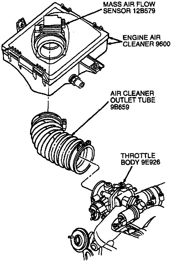 2. Remove air cleaner outlet tube from throttle body and Mass Air Flow (MAF) sensor.