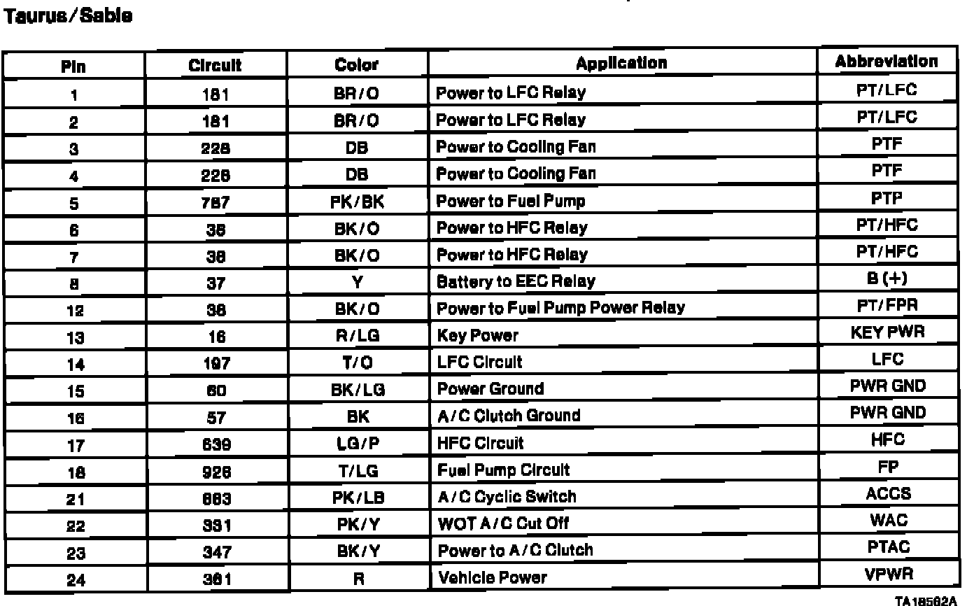 Taurus V6-183 3.0L VIN U FI