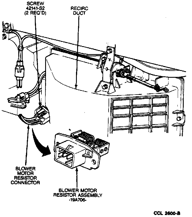 3. Remove the two resistor retaining screws and remove the resistor from the heater case.